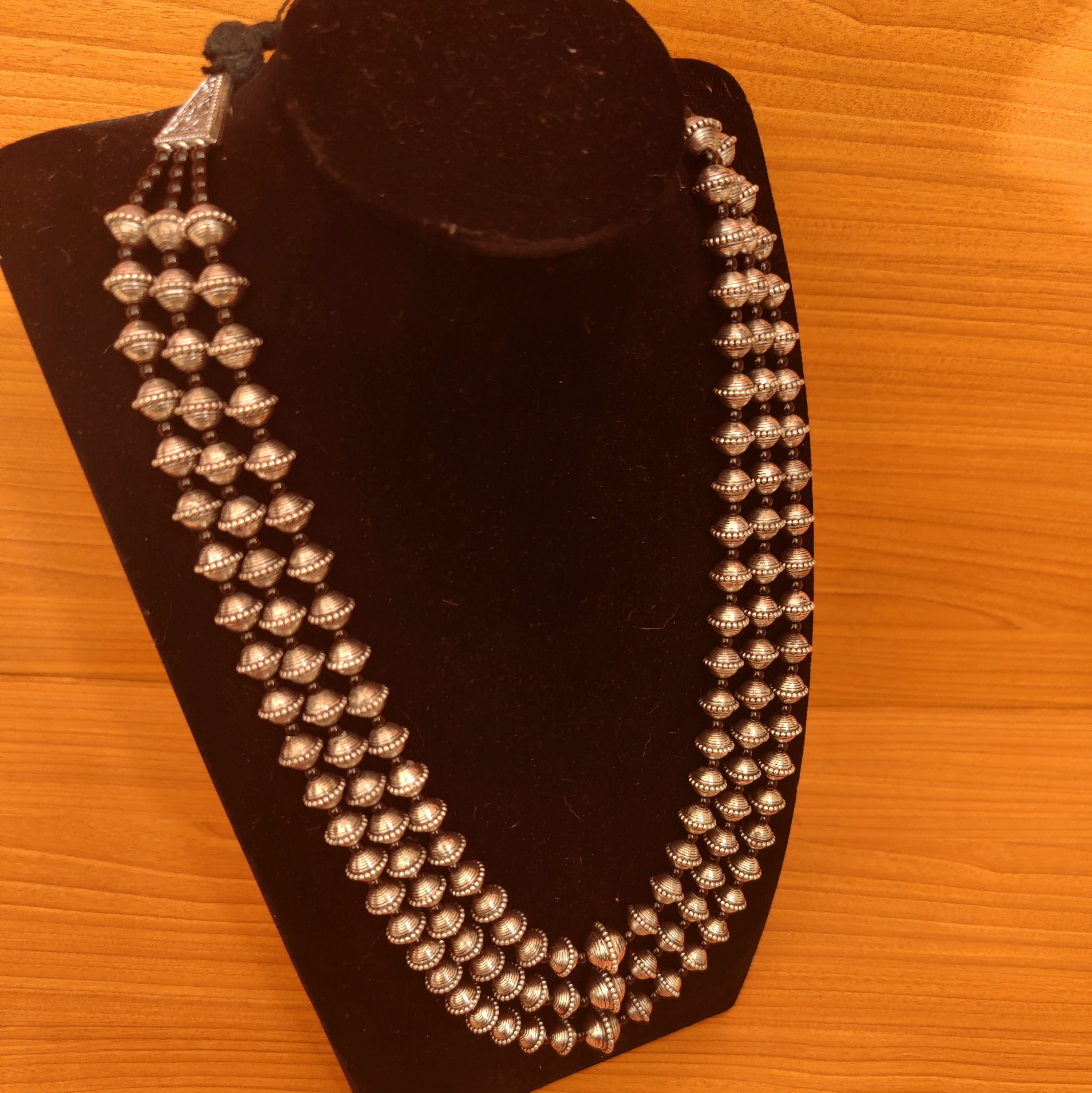 MULTILAYERED SILVER LOOK ETHNIC NECKLACE