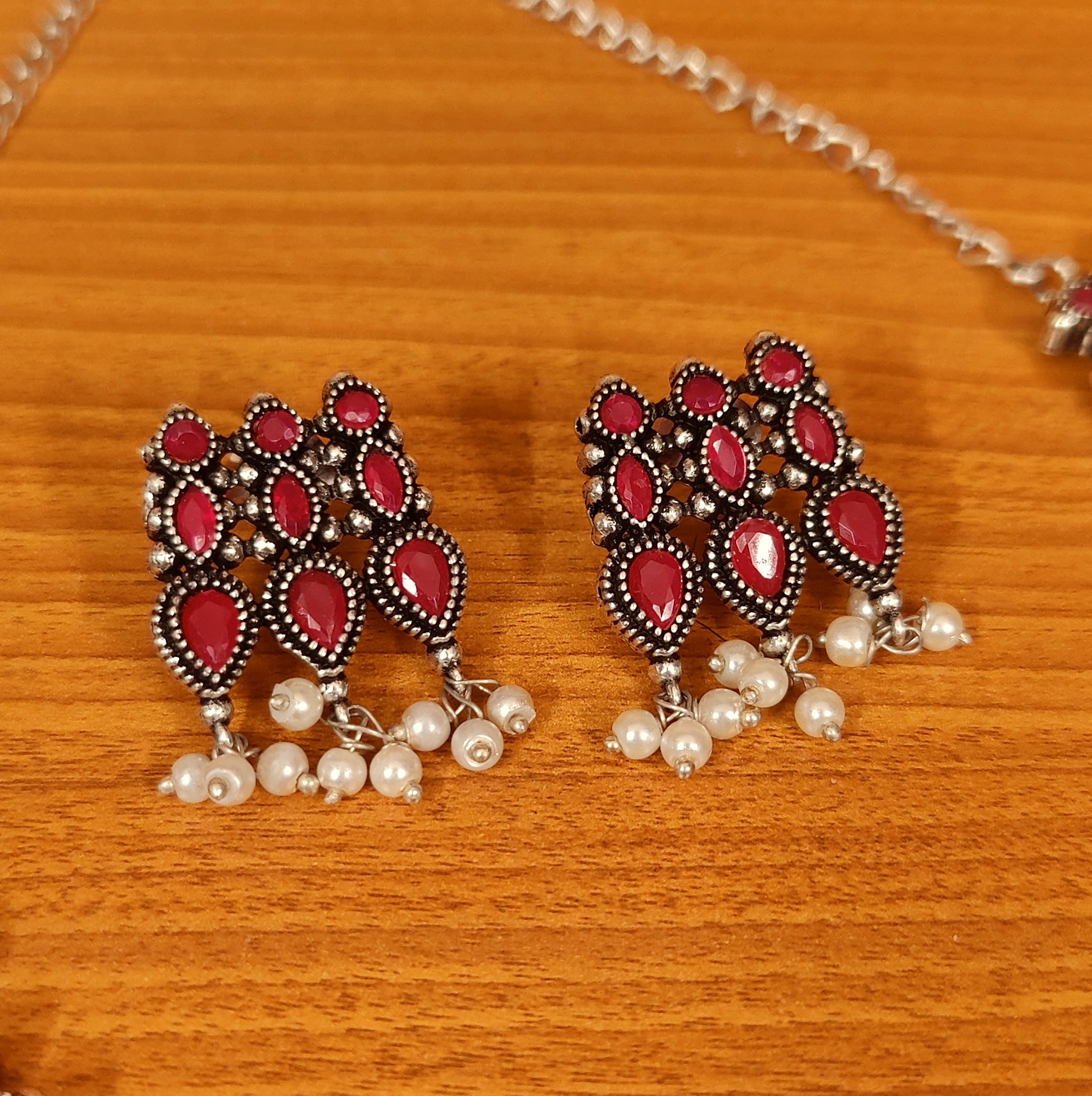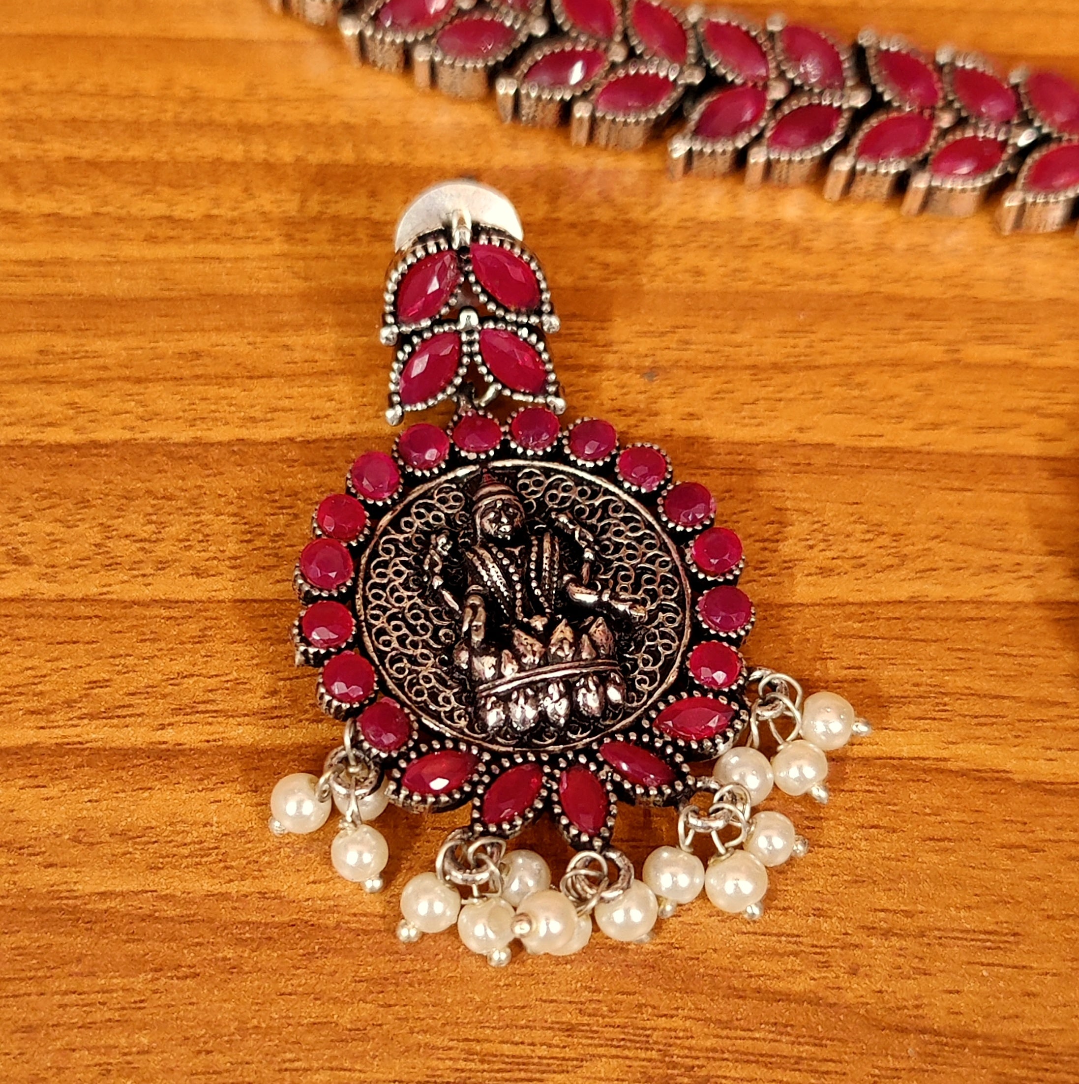 TEMPLE LOOK RUBY OXIDISED SILVER NECKLACE SET