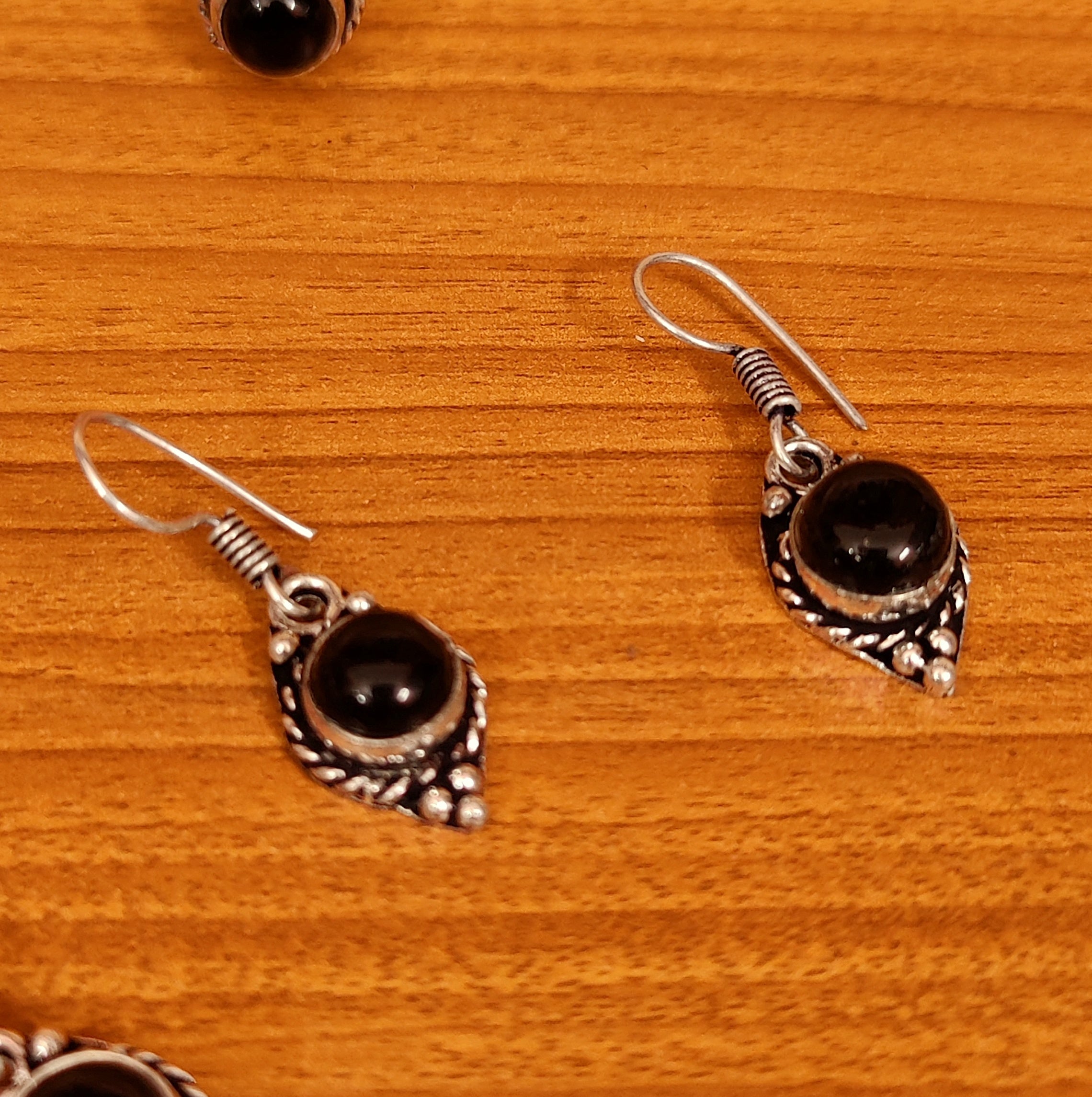 BLACK ONYX OXIDISED SILVER NECKLACE SET COMBO