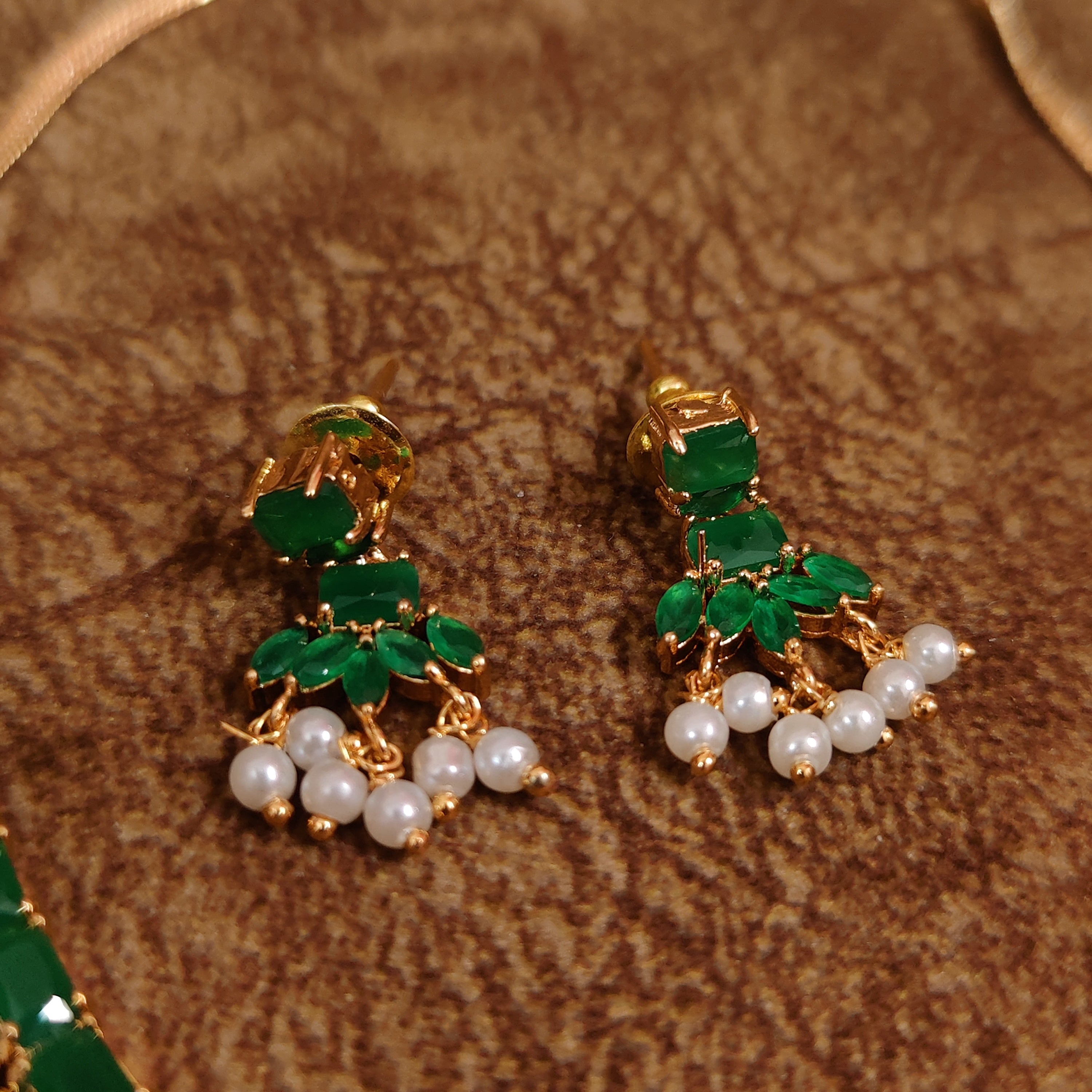 GREEN COLOUR ZIRCON STUDDED NECKLACE SET