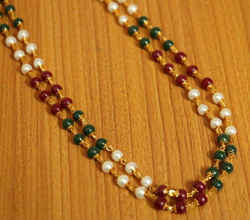 2 Line Multicolour Gold Plated Necklace