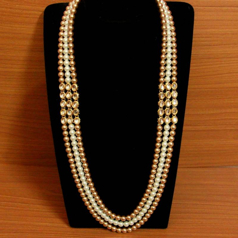 Golden & White Pearl Kundan Meenakari Necklace Set