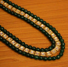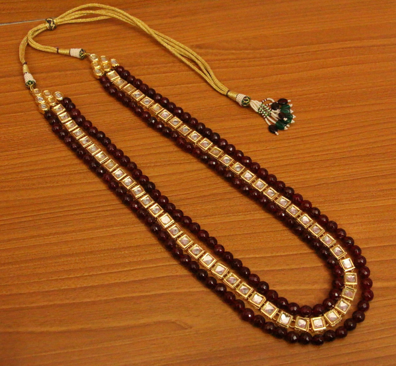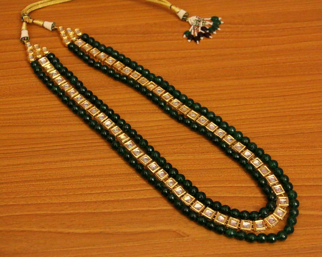 This kundan meenakari necklace is handcrafted in silver alloy with imitation green colour quartz stone & kundan meenakari work of very fine quality , the necklace is plated with 18kt gold rhodium to give it a real gold look.