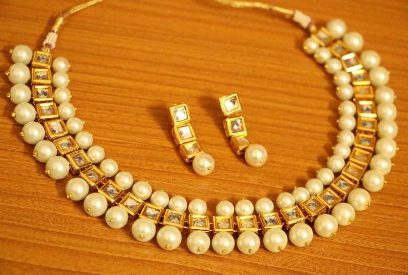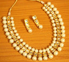 This beautiful necklace set is handcrafted in brass alloy with imitation pearls & kundan with meenakari work of very fine quality . This necklace set are coated with 18 kt gold polish which give them a unique look . An absolutely stunning piece to own and are very light in weight.