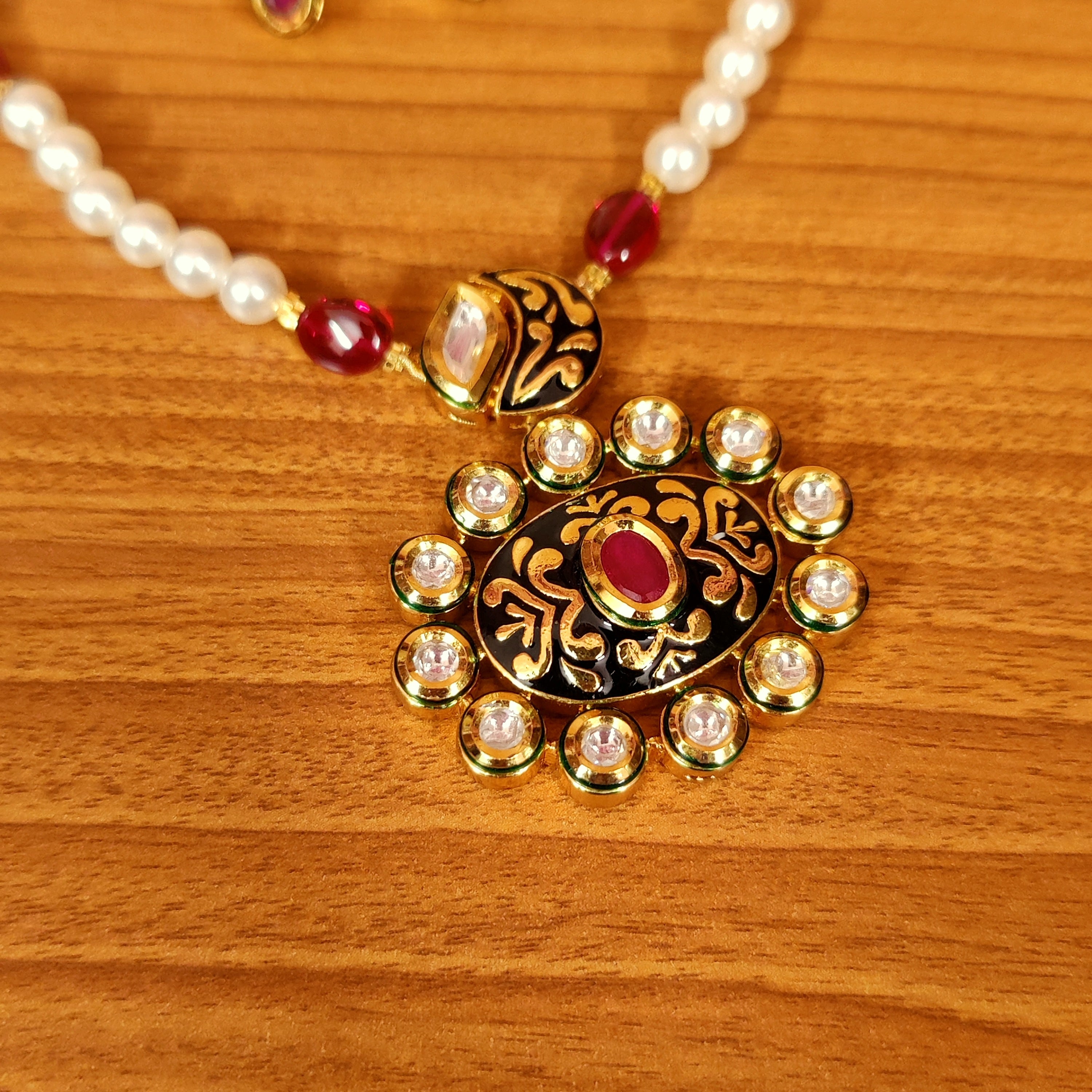BLACK KUNDAN POLKI & MEENAKARI ROYAL & SIMPLE PENDANT SET