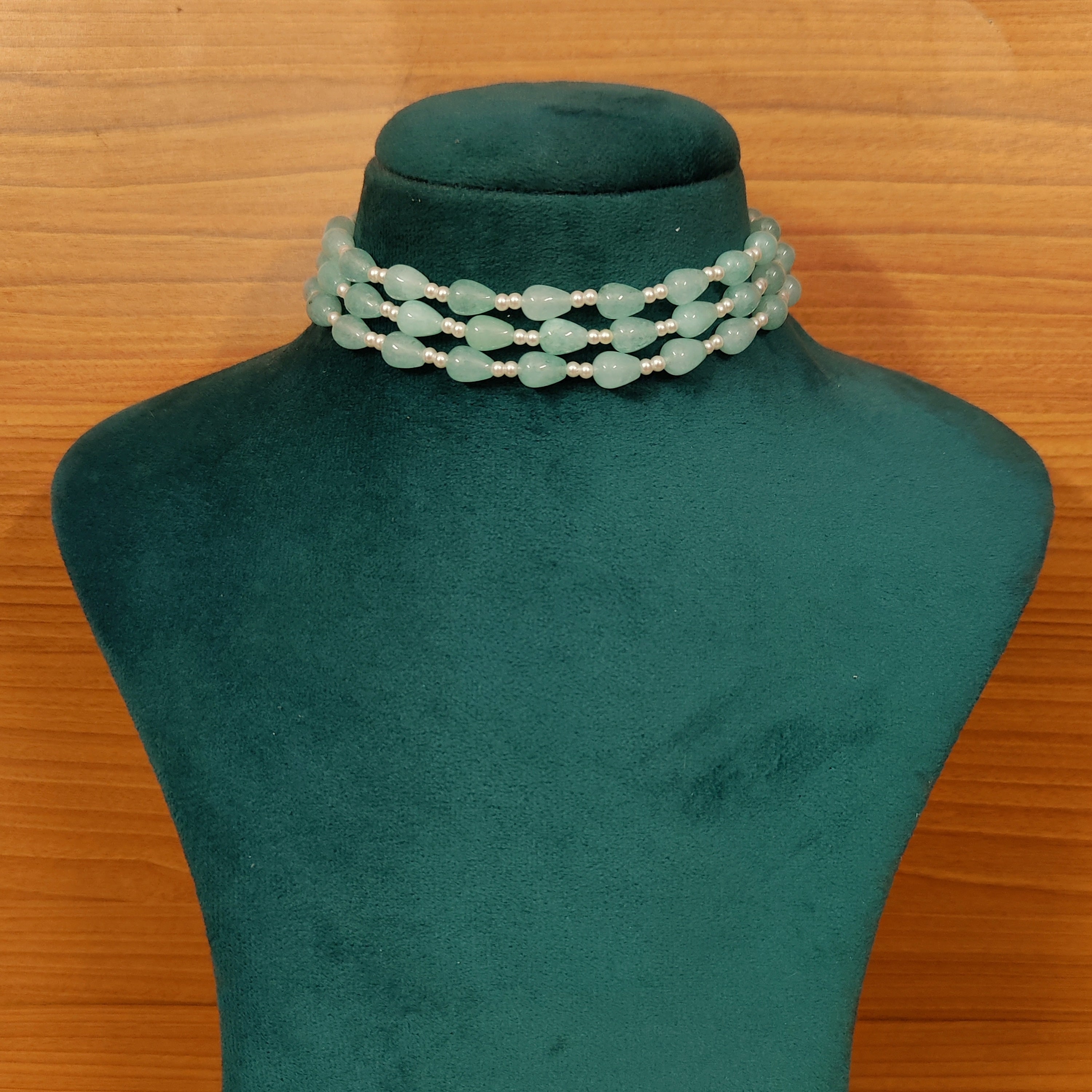LIGHT TURQUOISE MONALISA BEADS 3 LAYERED CHOKER NECKLACE