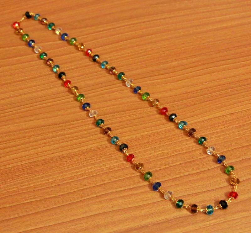 This necklace is handcrafted in brass alloy with imitation multi swarovski crystal beads work of very fine quality , this necklace is coated with 18kt nickle free gold plating to avoid skin allergies and its very light in weight .
