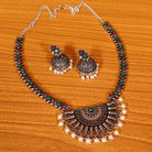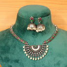 MULTICOLOUR OXIDISED SILVER LOOK ETHNIC NECKLACE SET