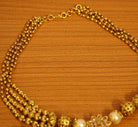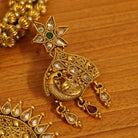 This beautiful necklace set is handcrafted in copper alloy with imitation ruby,zircon & polki work of very fine quality . This necklace set is coated with 18kt gold polish which give them a unique look . An absolutely stunning piece to own and are very light in weight.