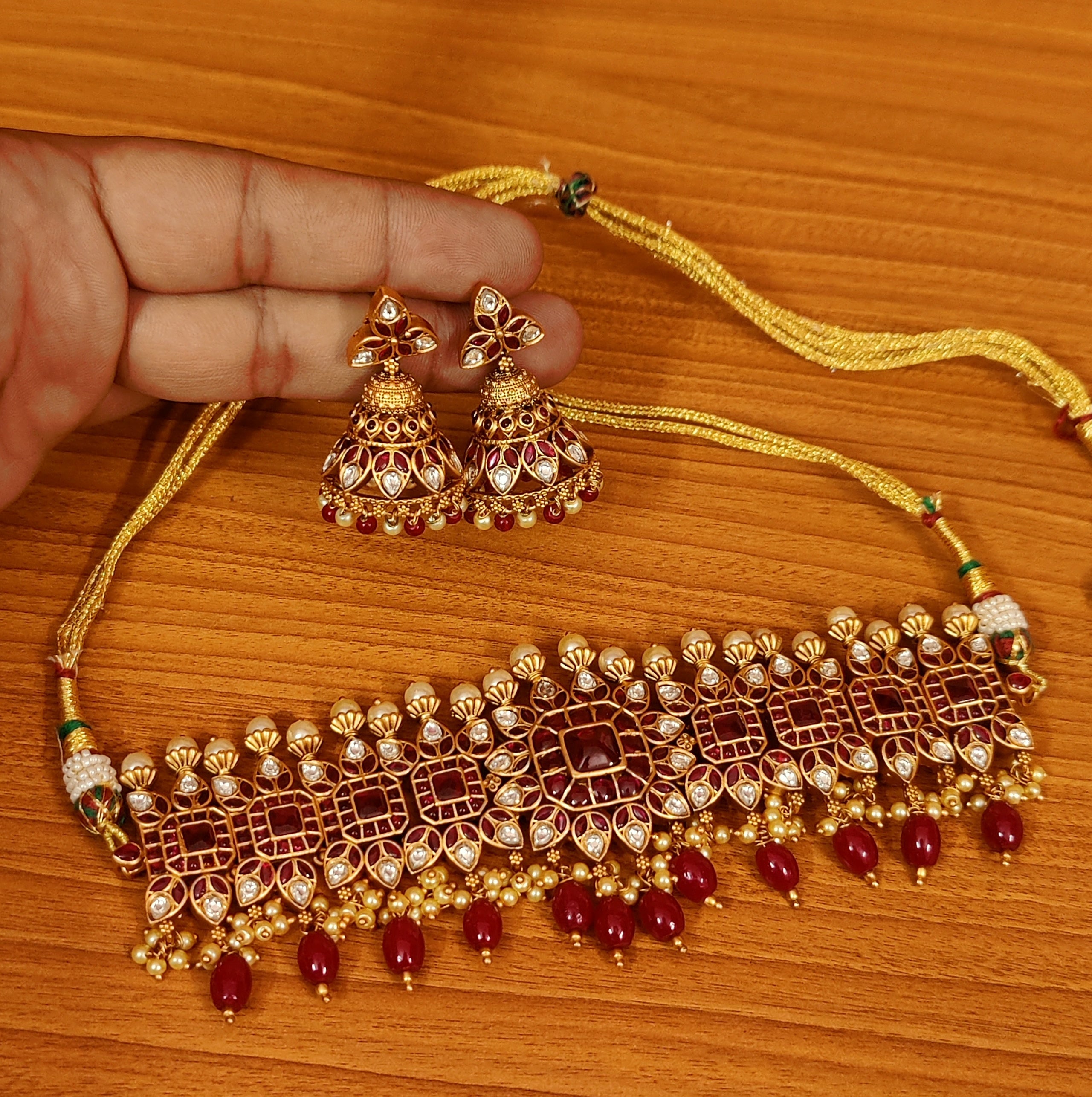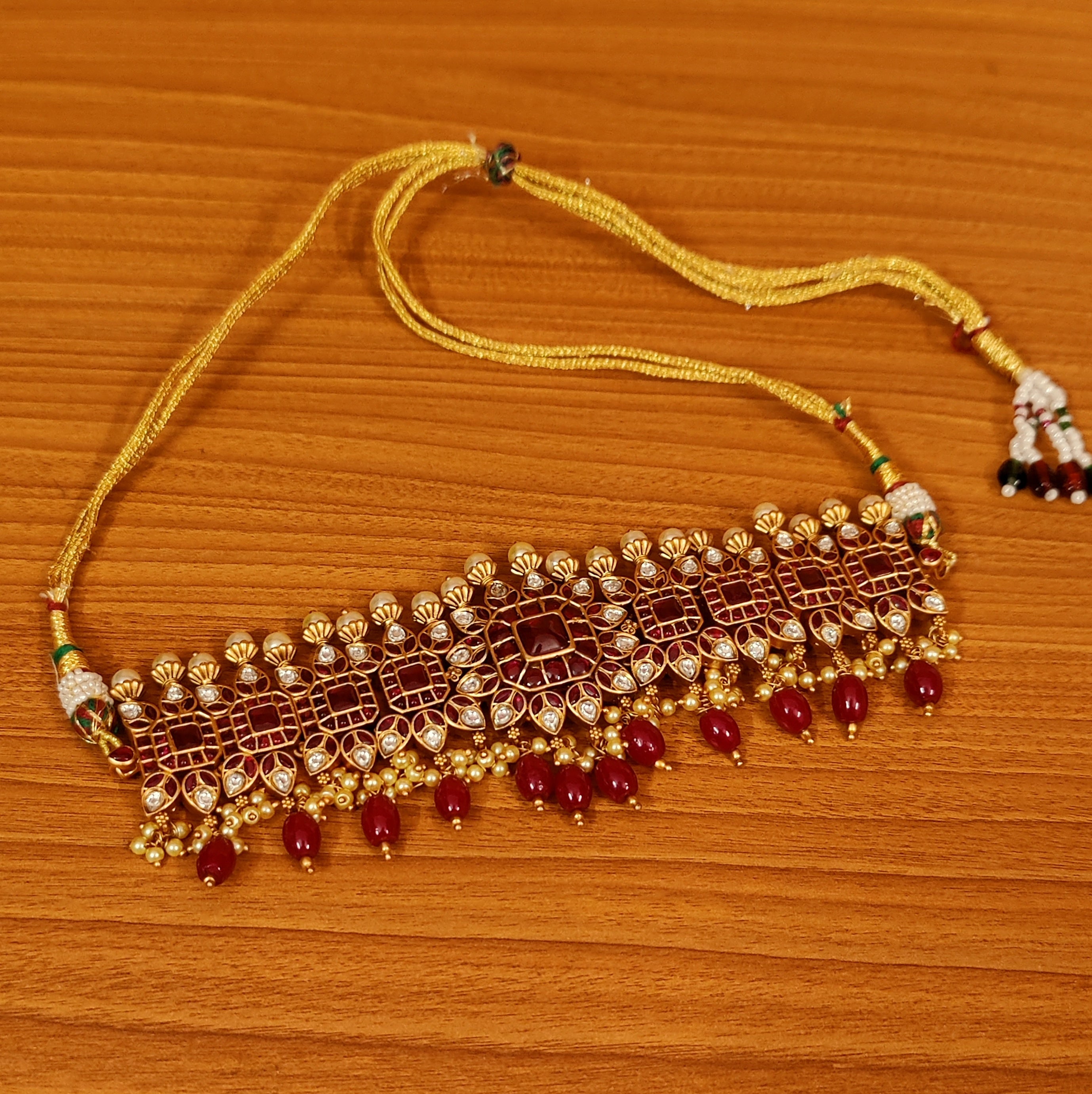RUBY & PEARL KUNDAN LOOK KEMPU STONE CHOKER NECKLACE SET
