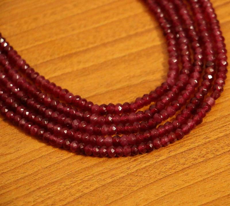 Ruby Semi Precious Stone 5 Line beaded Necklace