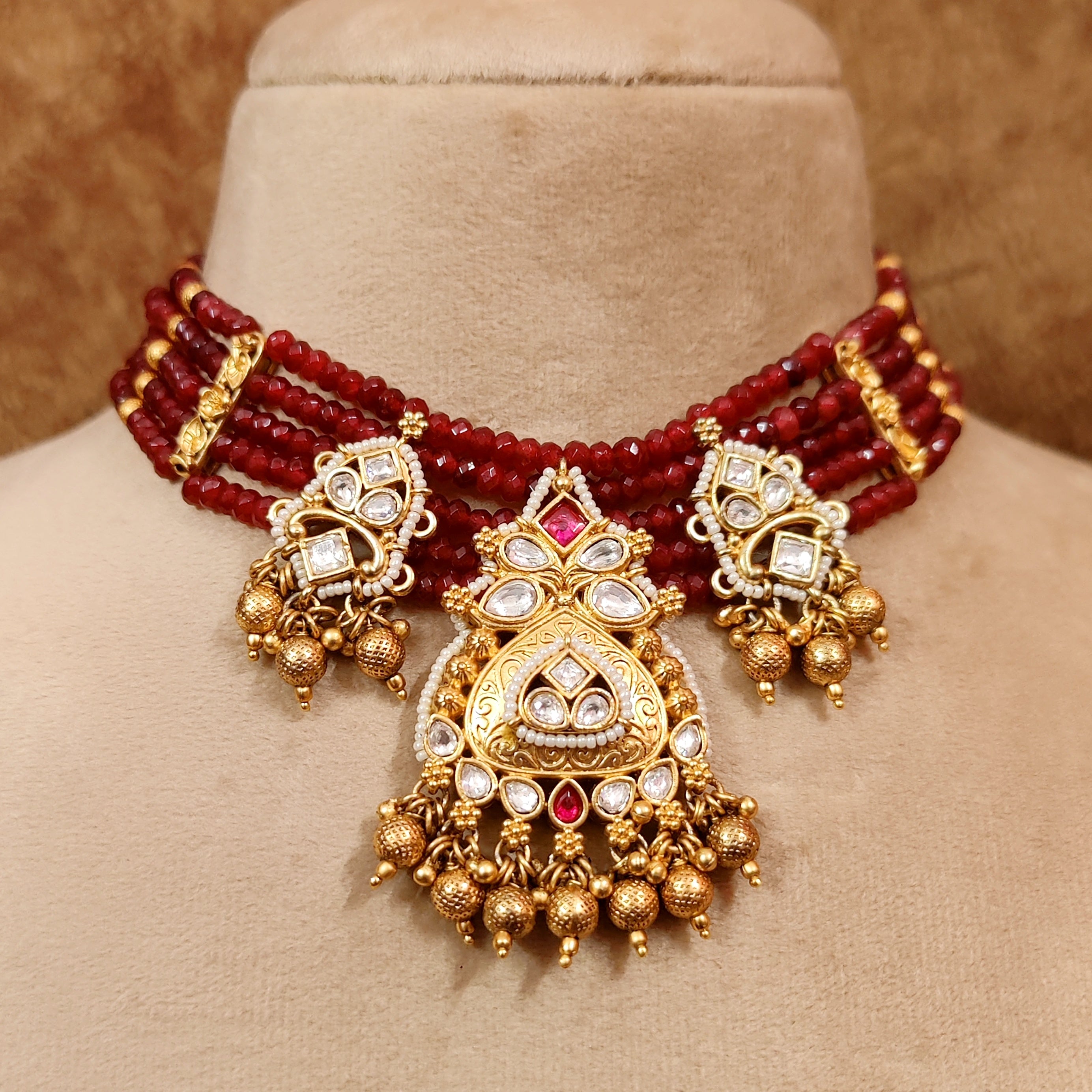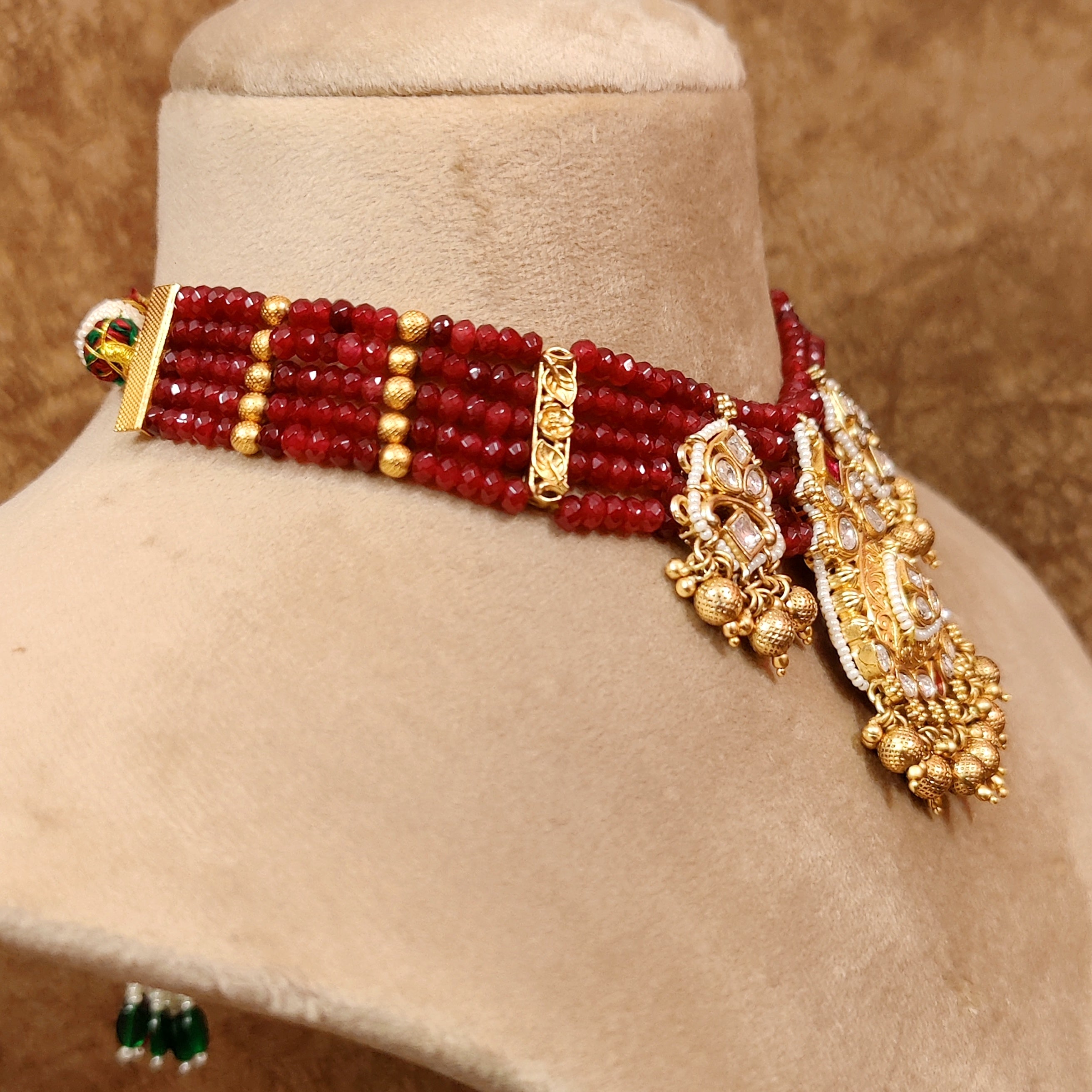 SEMI PRECIOUS RUBY KUNDAN POLKI NECKLACE SET