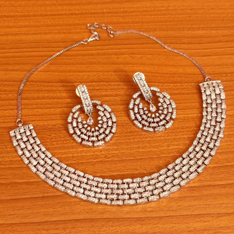 This Necklace Set Is Handcrafted In Brass Alloy With Imitation Cz Stone Of Very Fine Quality . The Nose Ring Is Very Intricate And Very Light In Weight And Is Plated In 18kt White Gold Plating As Done On The Real Gold Jewellery.
