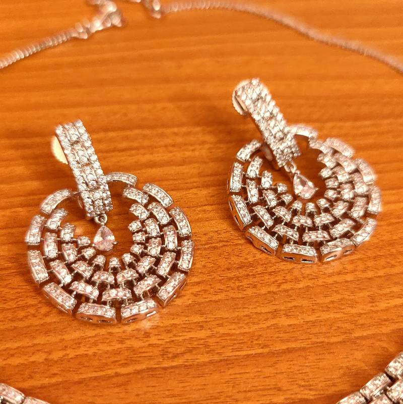 SILVER PLATED DIAMOND LOOK CARTIER CHAIN NECKLACE SET