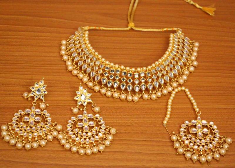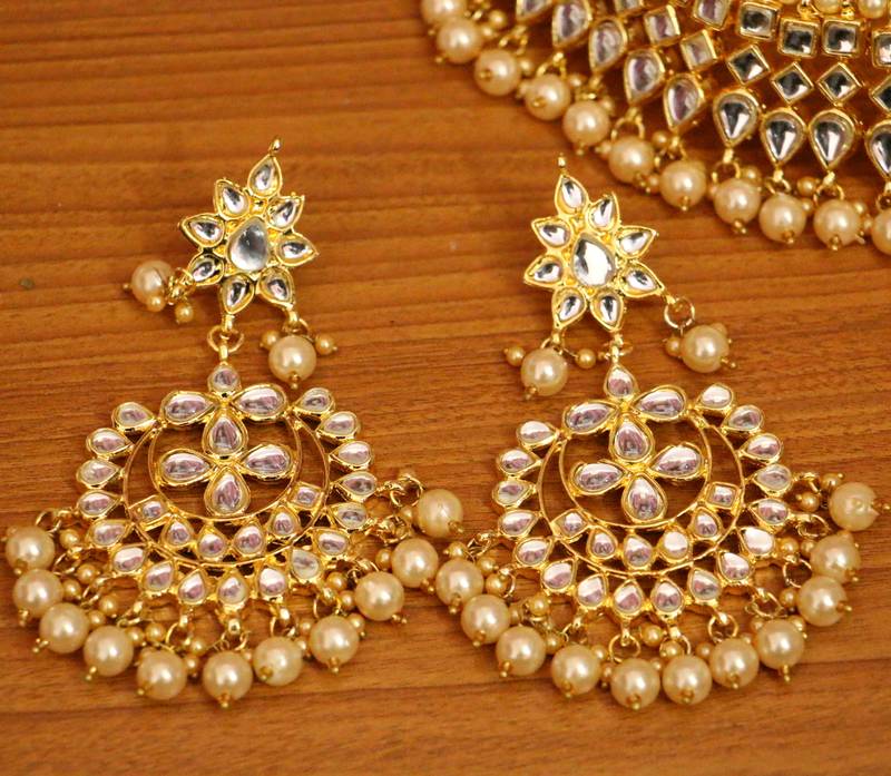 This Kundan Polki Necklace Set Is Handcrafted In Silver Alloy With Imitation Cream Colour Pearl And Kundan Polki Stones Of Fine Quality , The Necklace Set Is Plated In 18kt Gold Plating And The Design Itself Is Perfect For Wedding Attires.