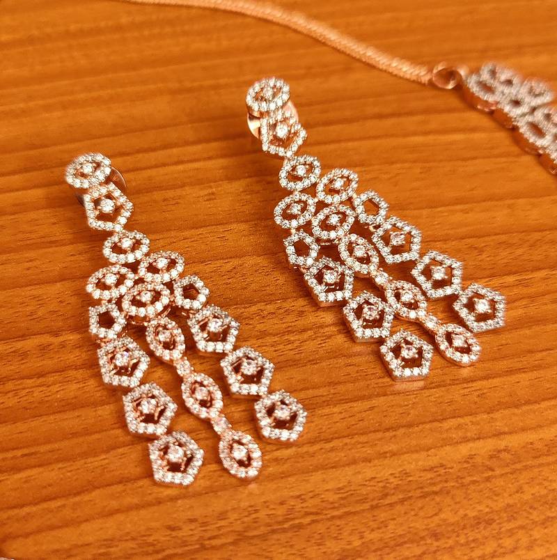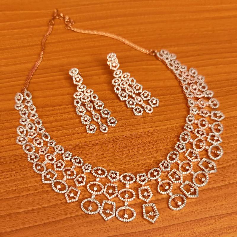 ROSE GOLD CZ STUDDED DIAMOND LOOK NECKLACE SET