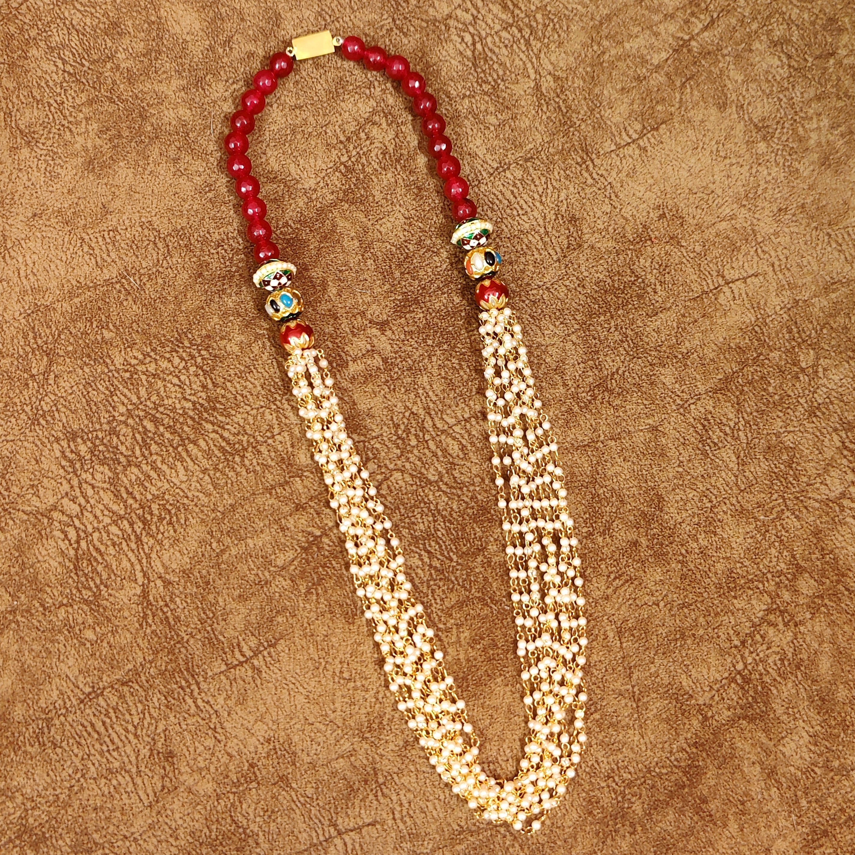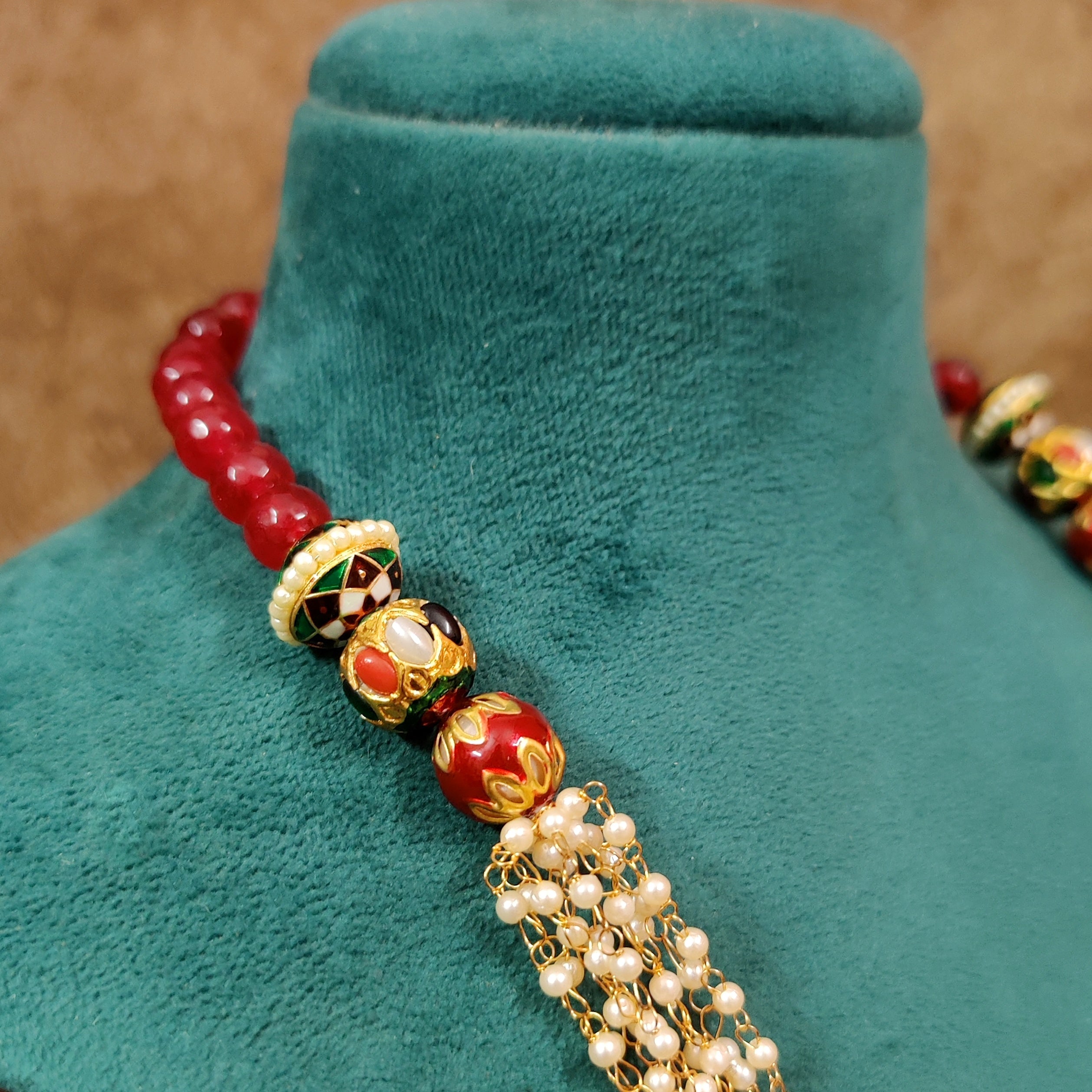 RUBY COLOUR ETHNIC PEARL NECKLACE