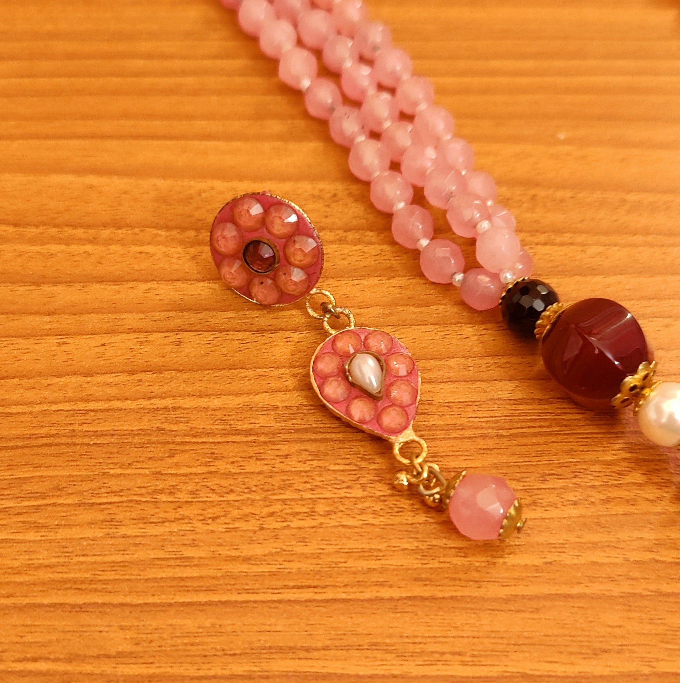 PINK ONYX SEMI PRECIOUS JAIPURI NECKLACE SET
