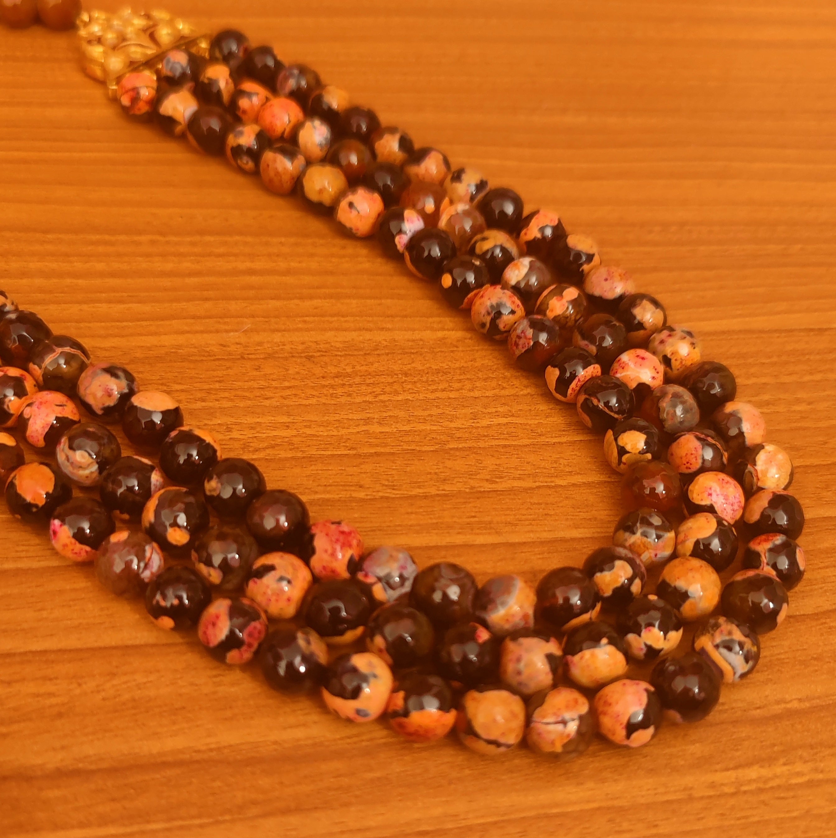 NATURAL BLACK AND ORANGE QUARTZ BEADS KUNDAN NECKLACE