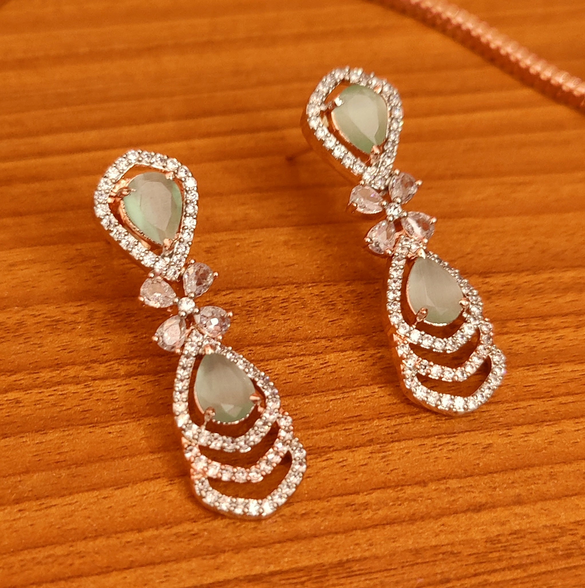 ROSE GOLD MINT GREEN CZ STUDDED DIAMOND LOOK NECKLACE SET