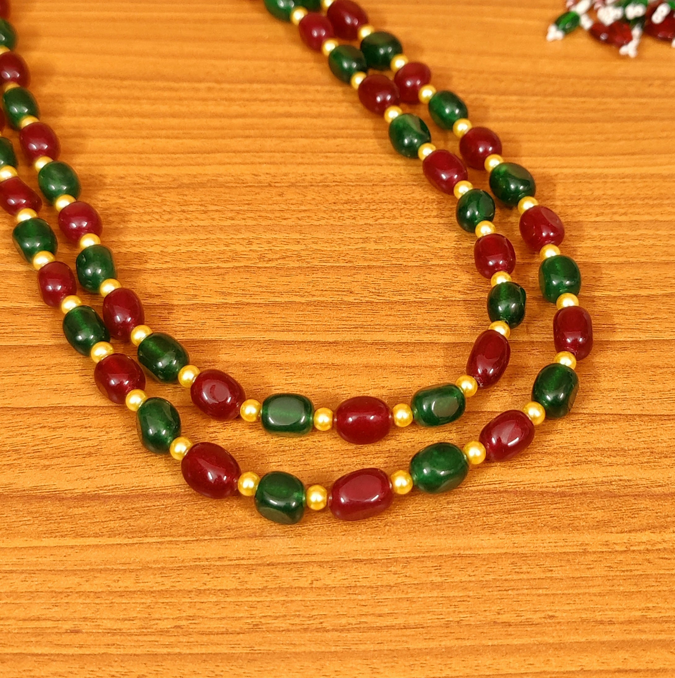 MULTICOLOUR RED & GREEN GLASS BEAD NECKLACE