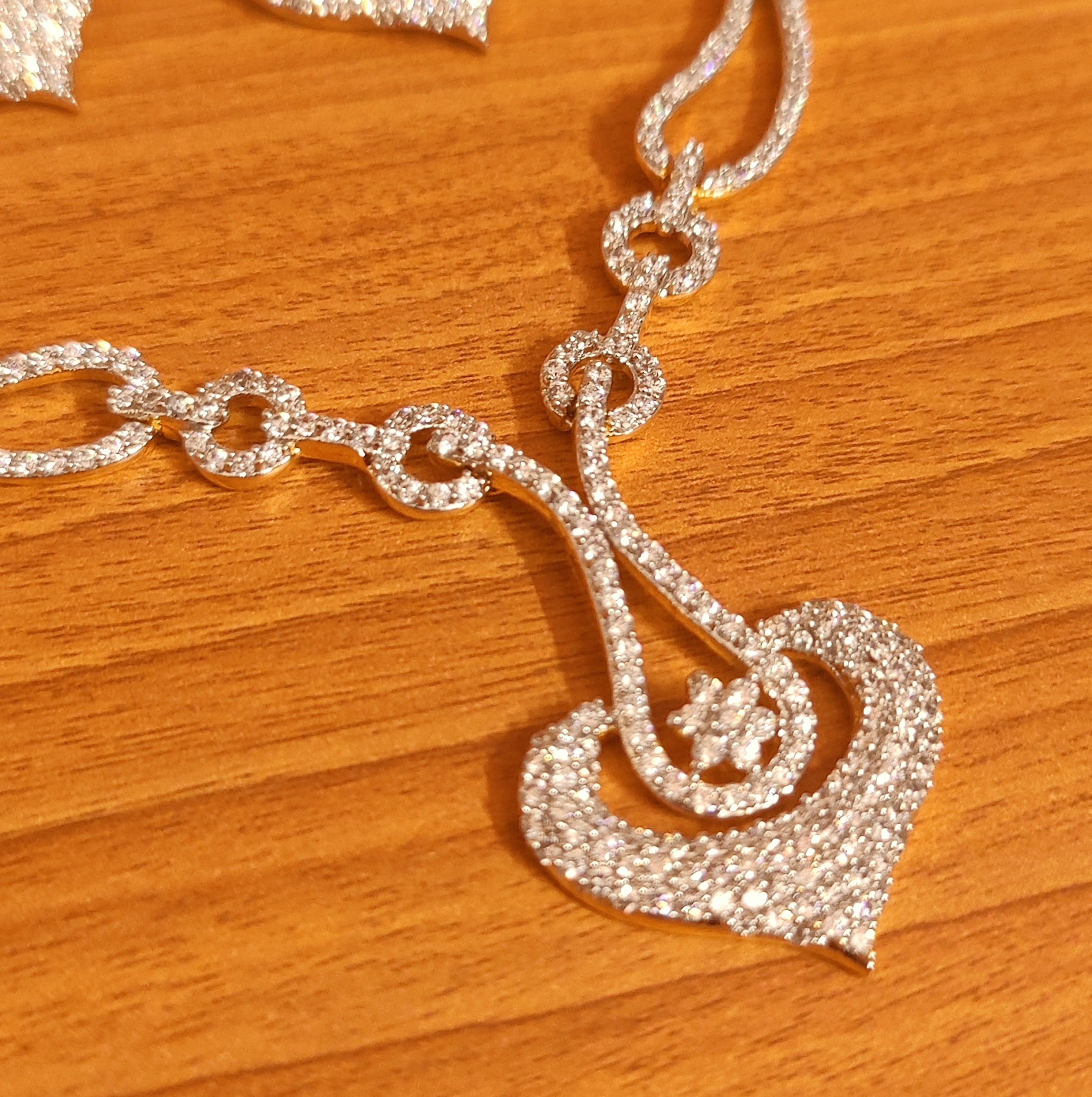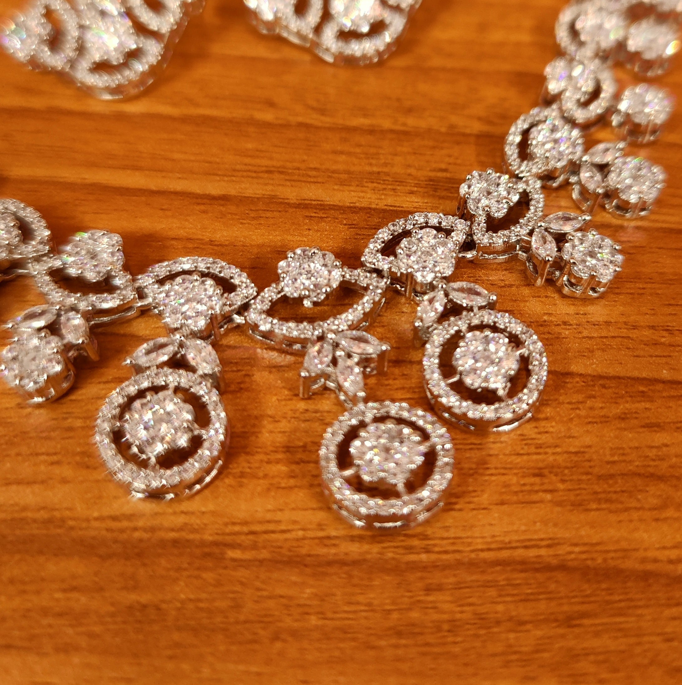 WHITE GOLD PLATED CZ STUDDED DIAMOND LOOK NECKLACE SET