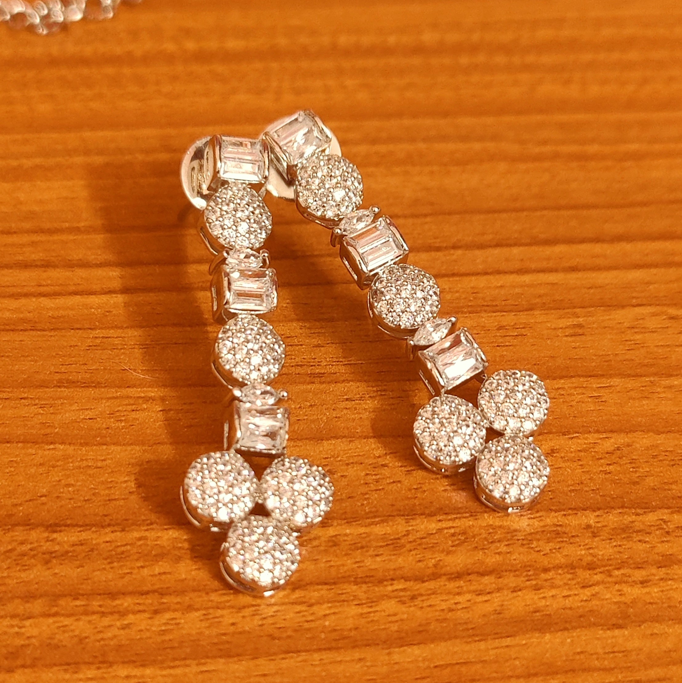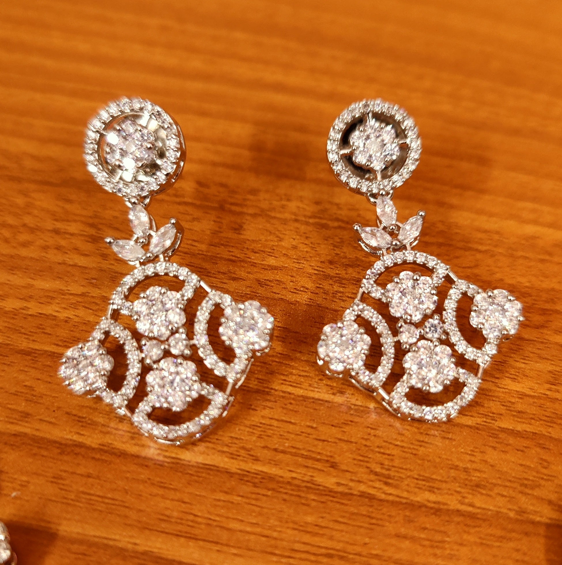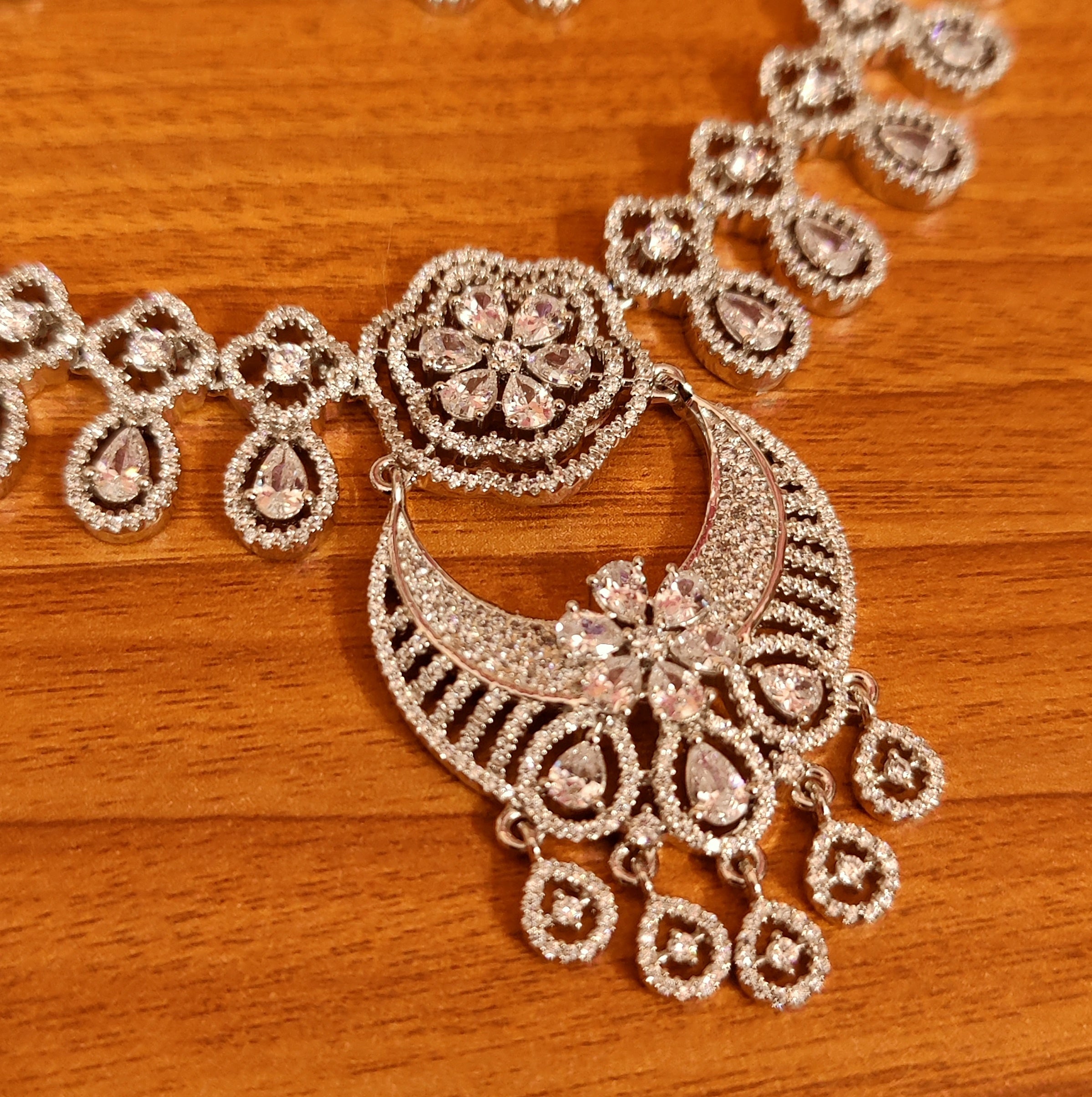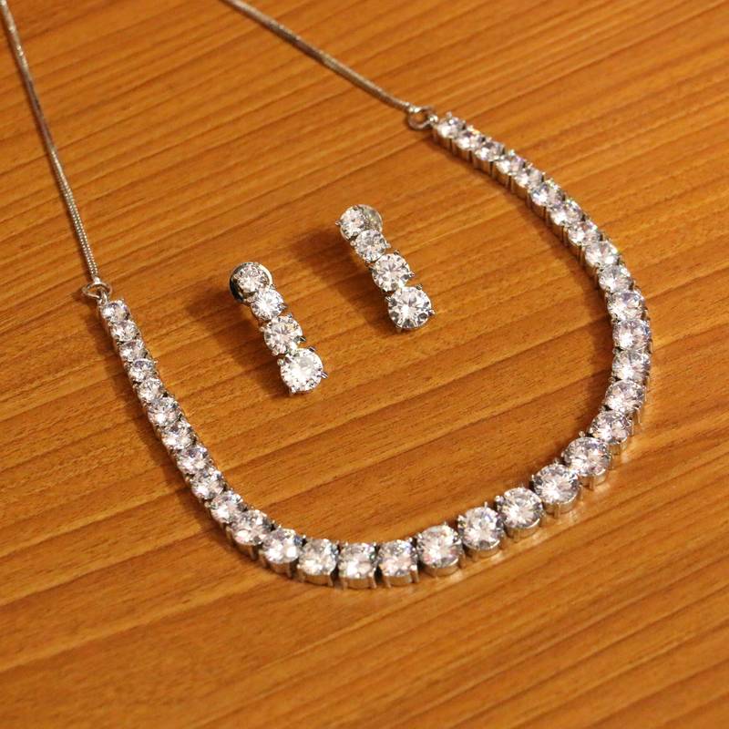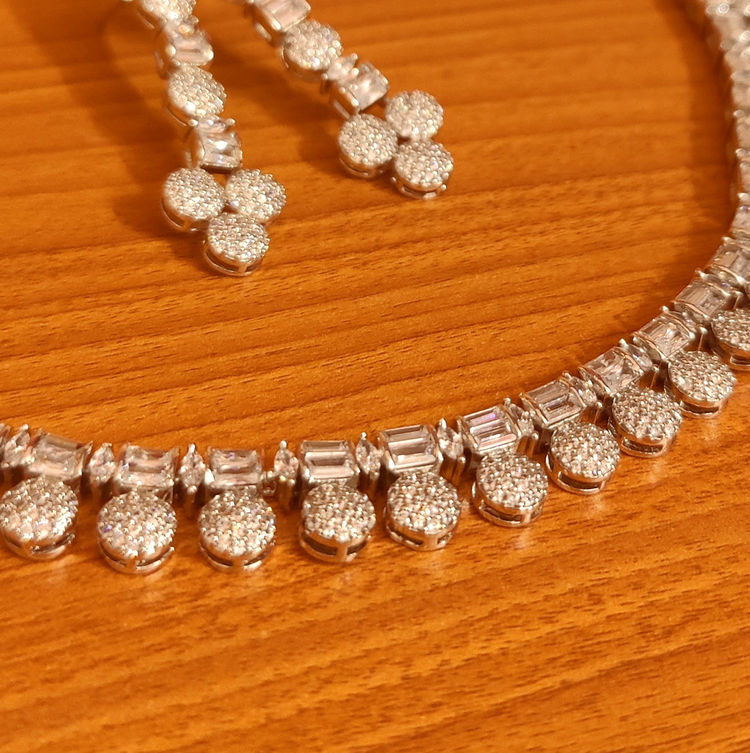 SILVER PLATED CZ STUDDED CLUSTER SETTING NECKLACE SET