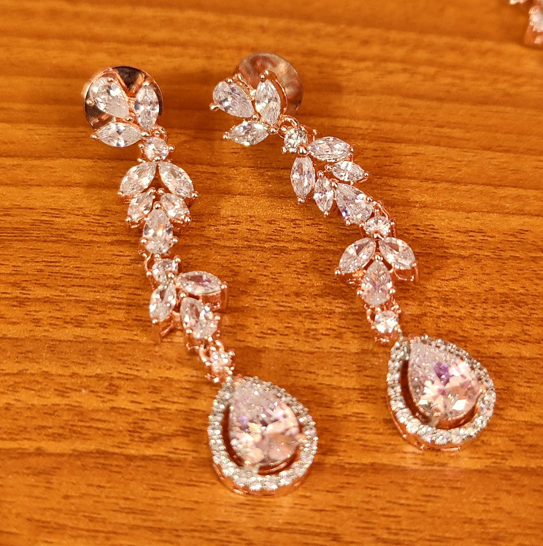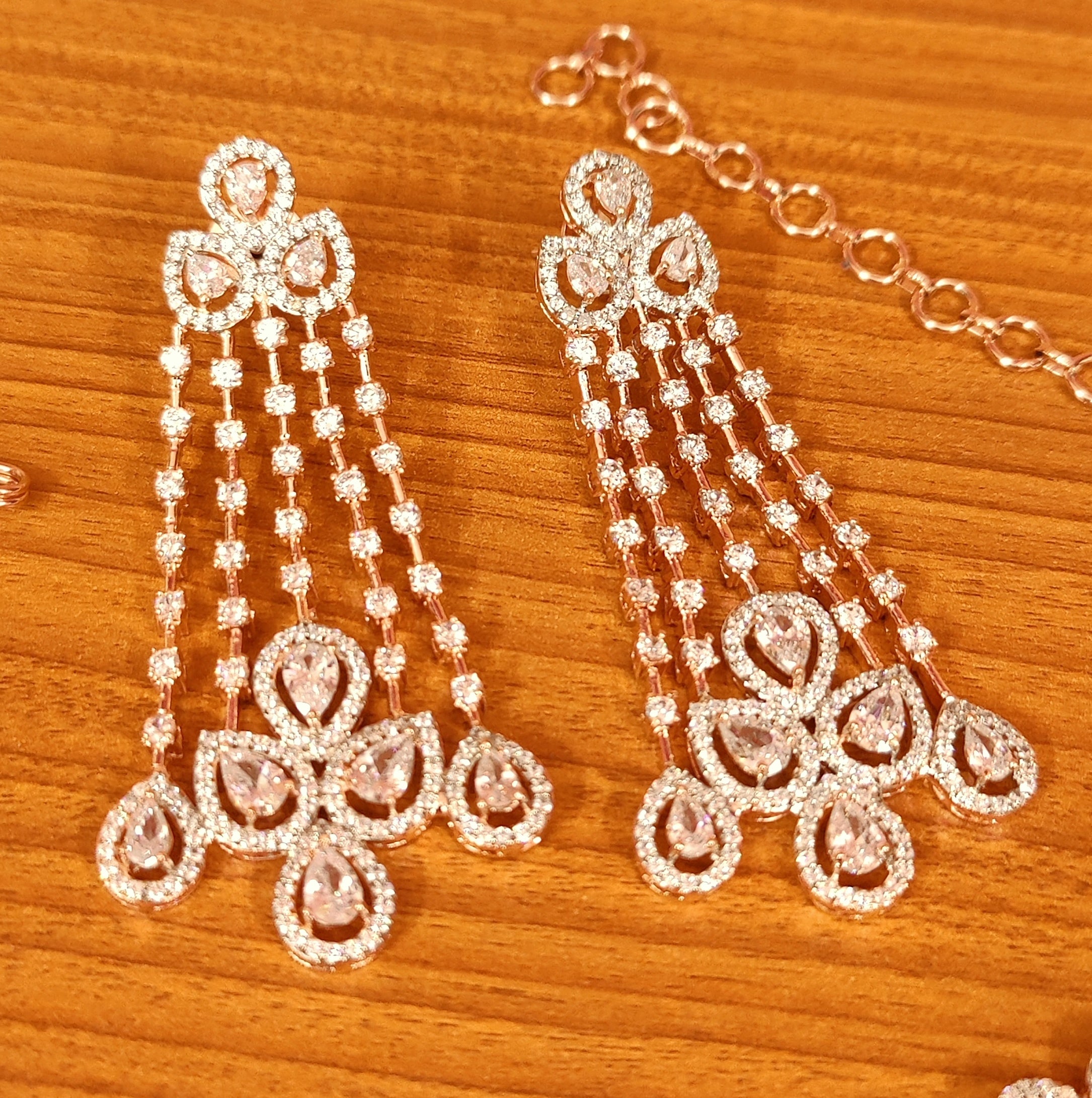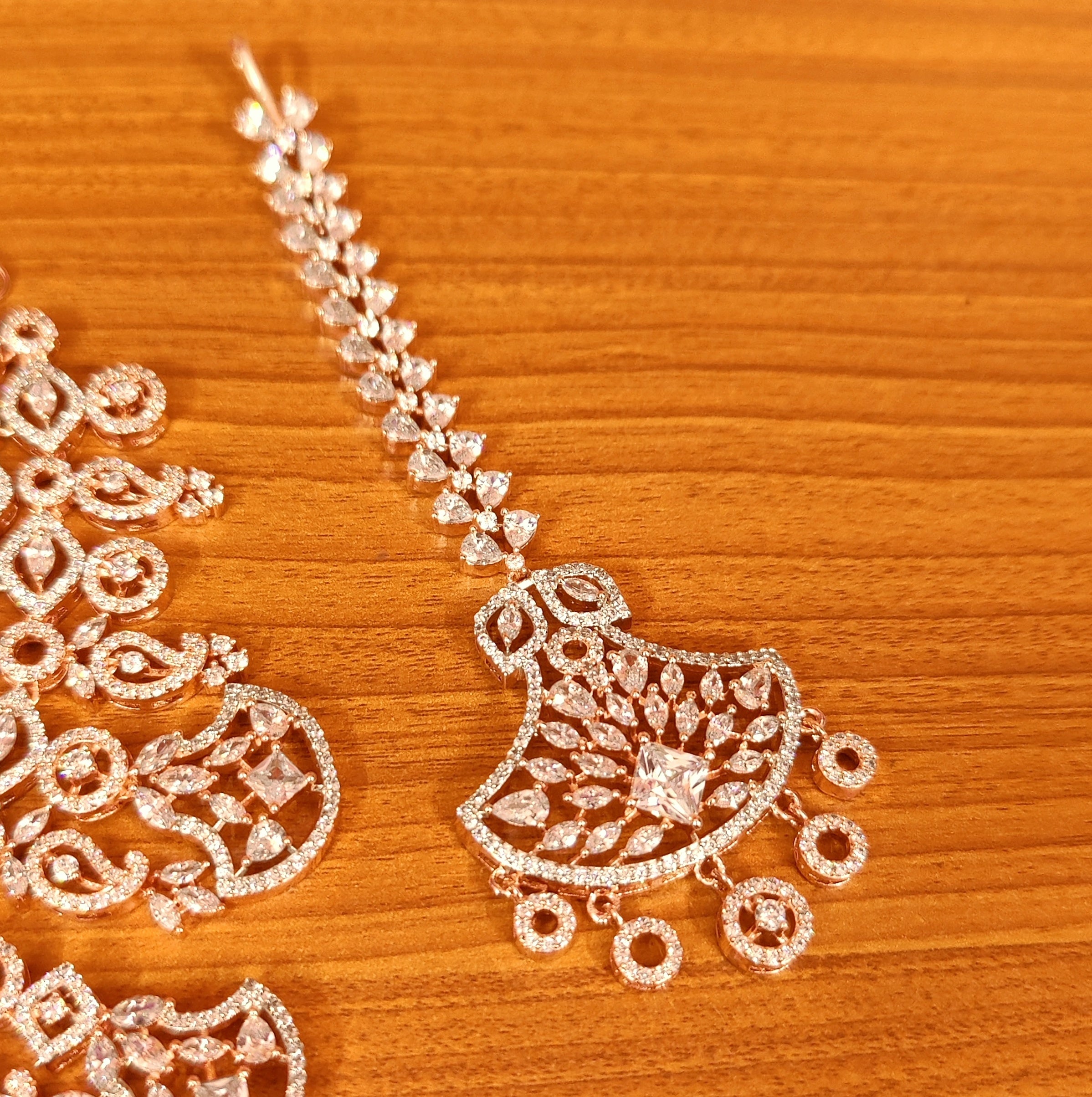 ROSE GOLD DIAMOND LOOK CZ STUUDDED WEDDING NECKLACE SET
