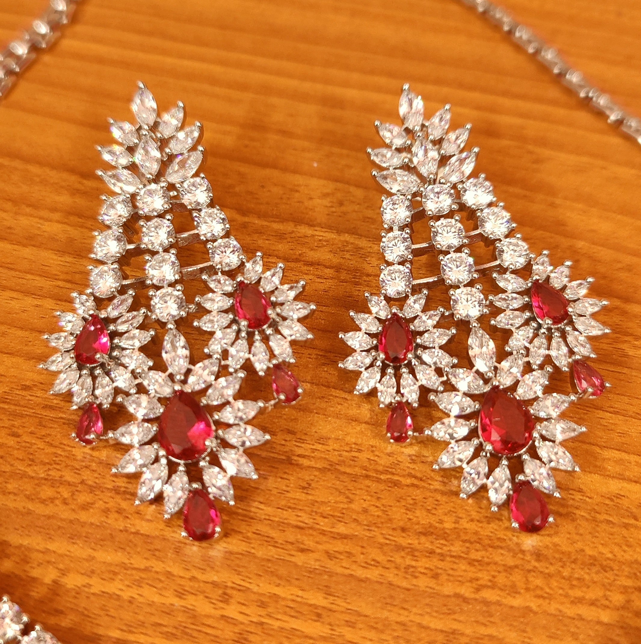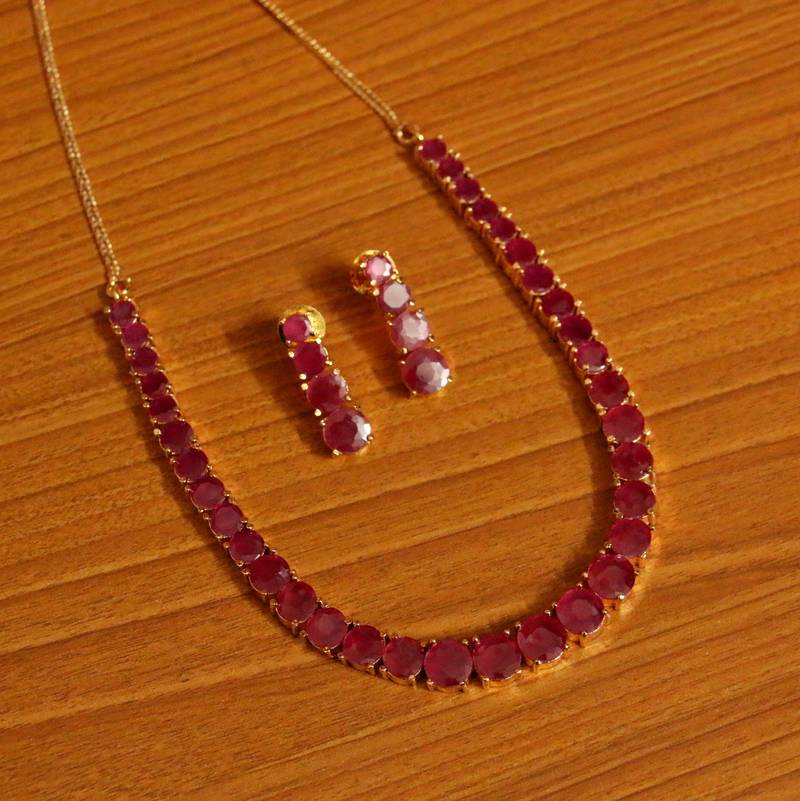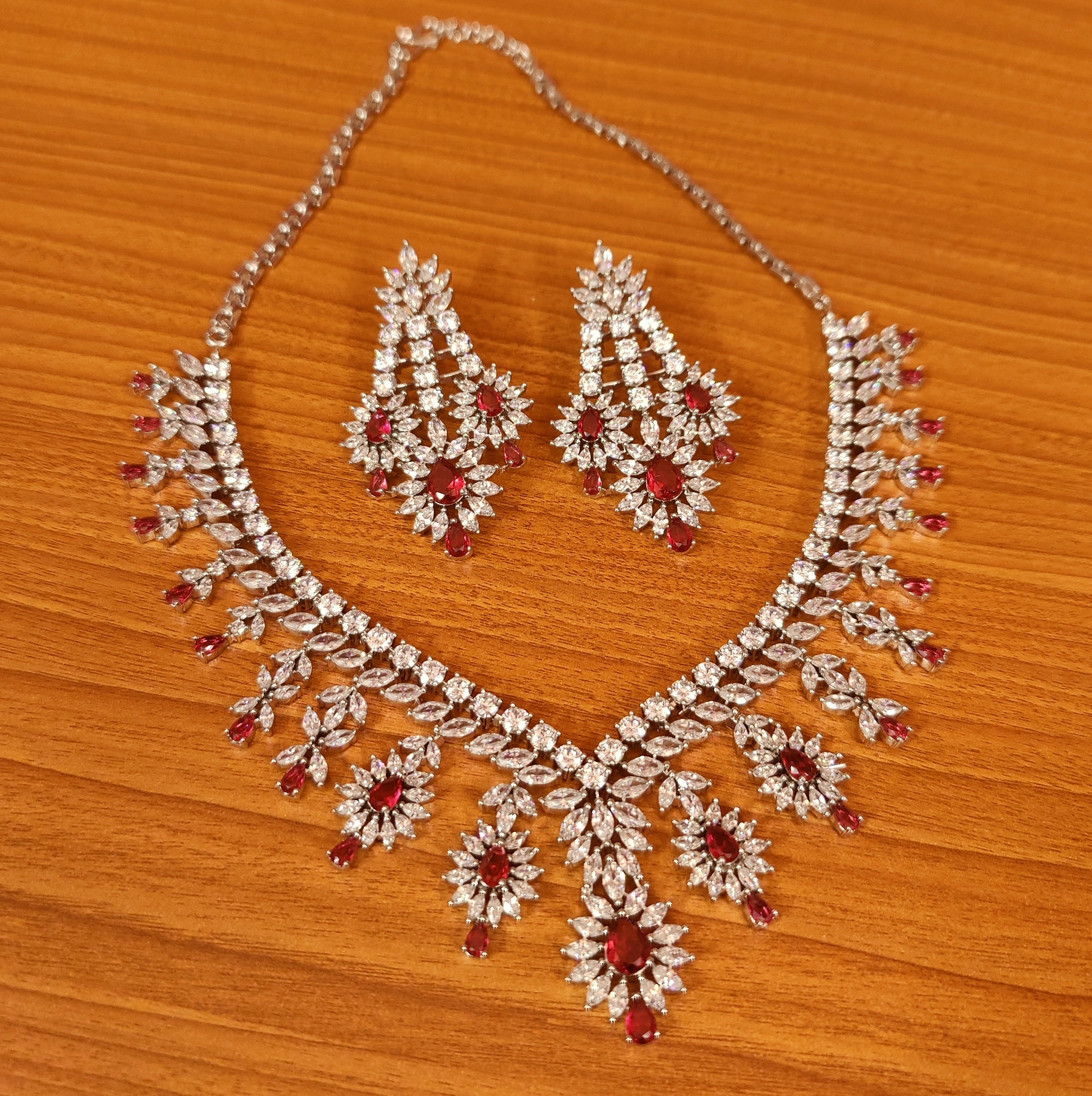RUBY PINK GARNET & CZ STUDDED WEDDING NECKLACE SET