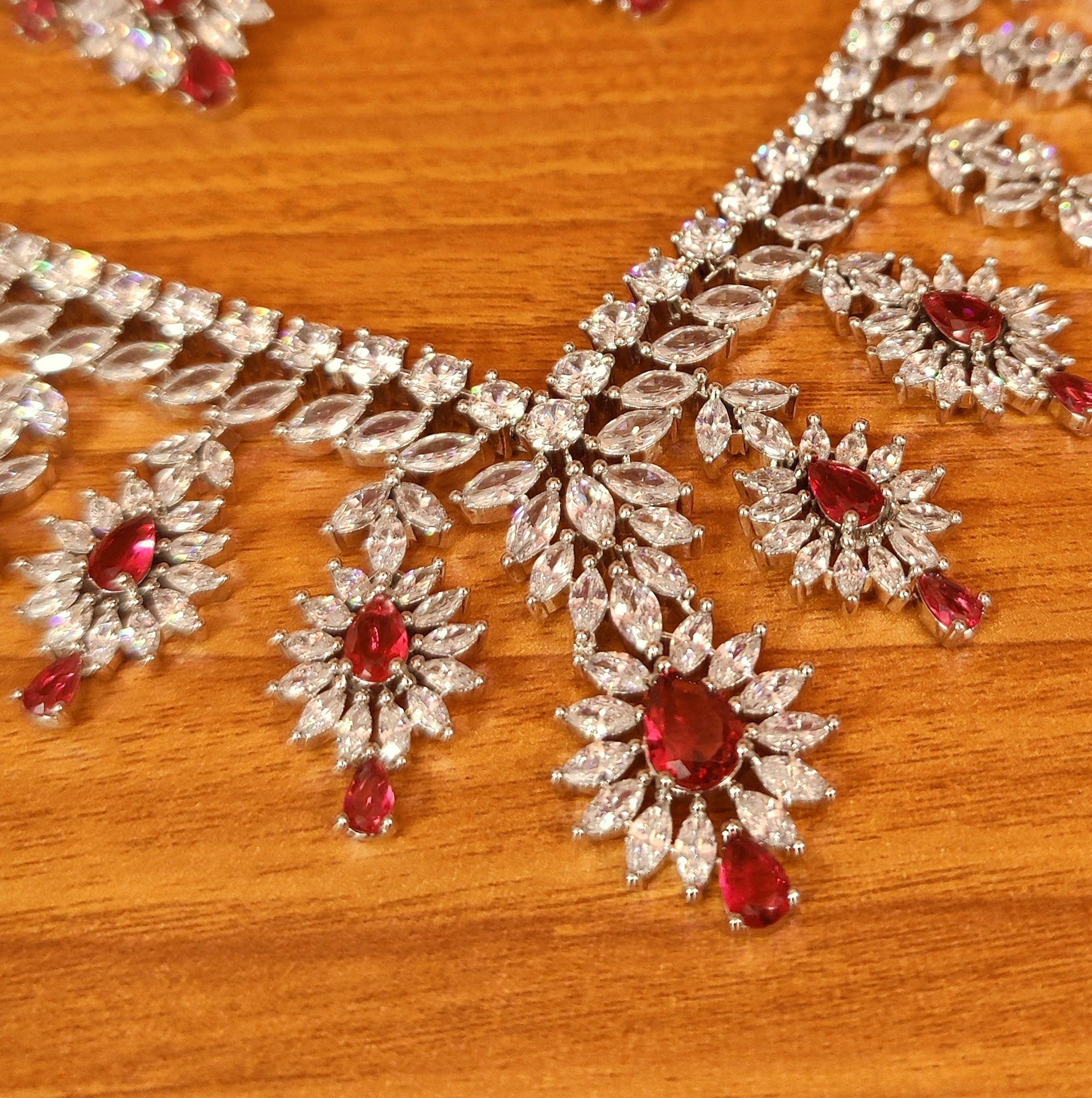 RUBY COLOUR CZ STUDDED GOLD LOOK NECKLACE SET