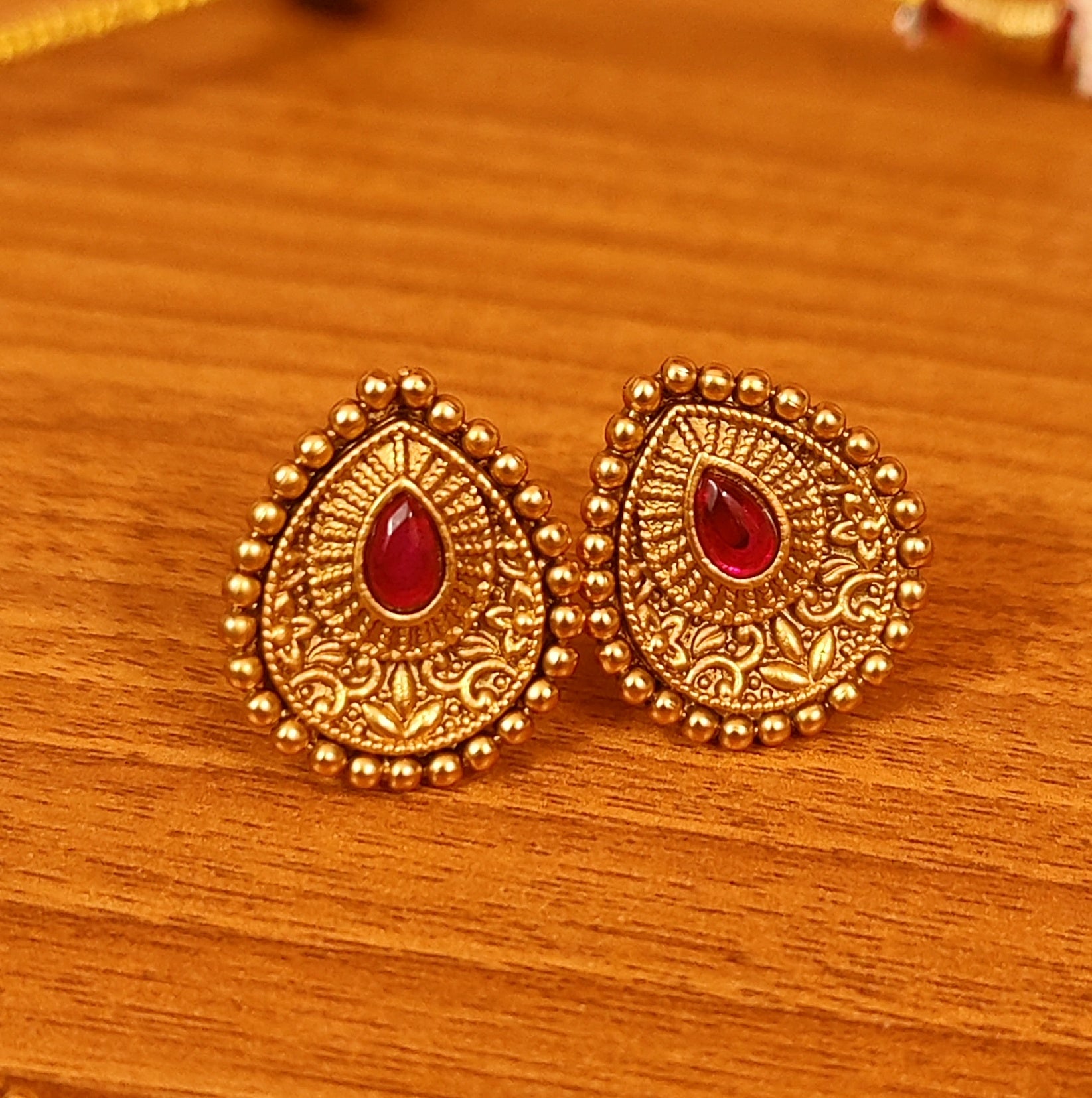 ANTIQUE REAL GOLD LOOK RED STONE WEDDING NECKLACE SET