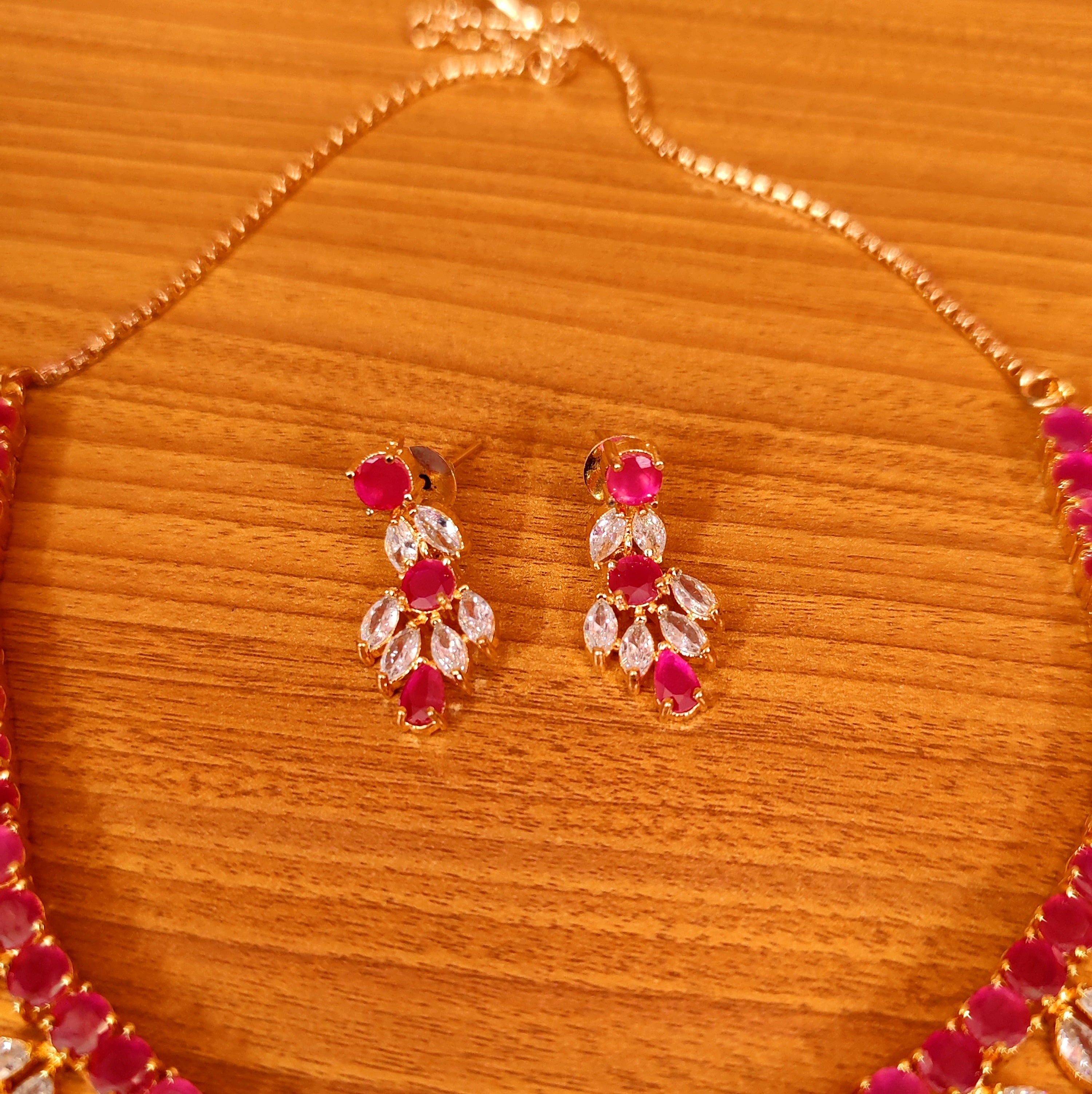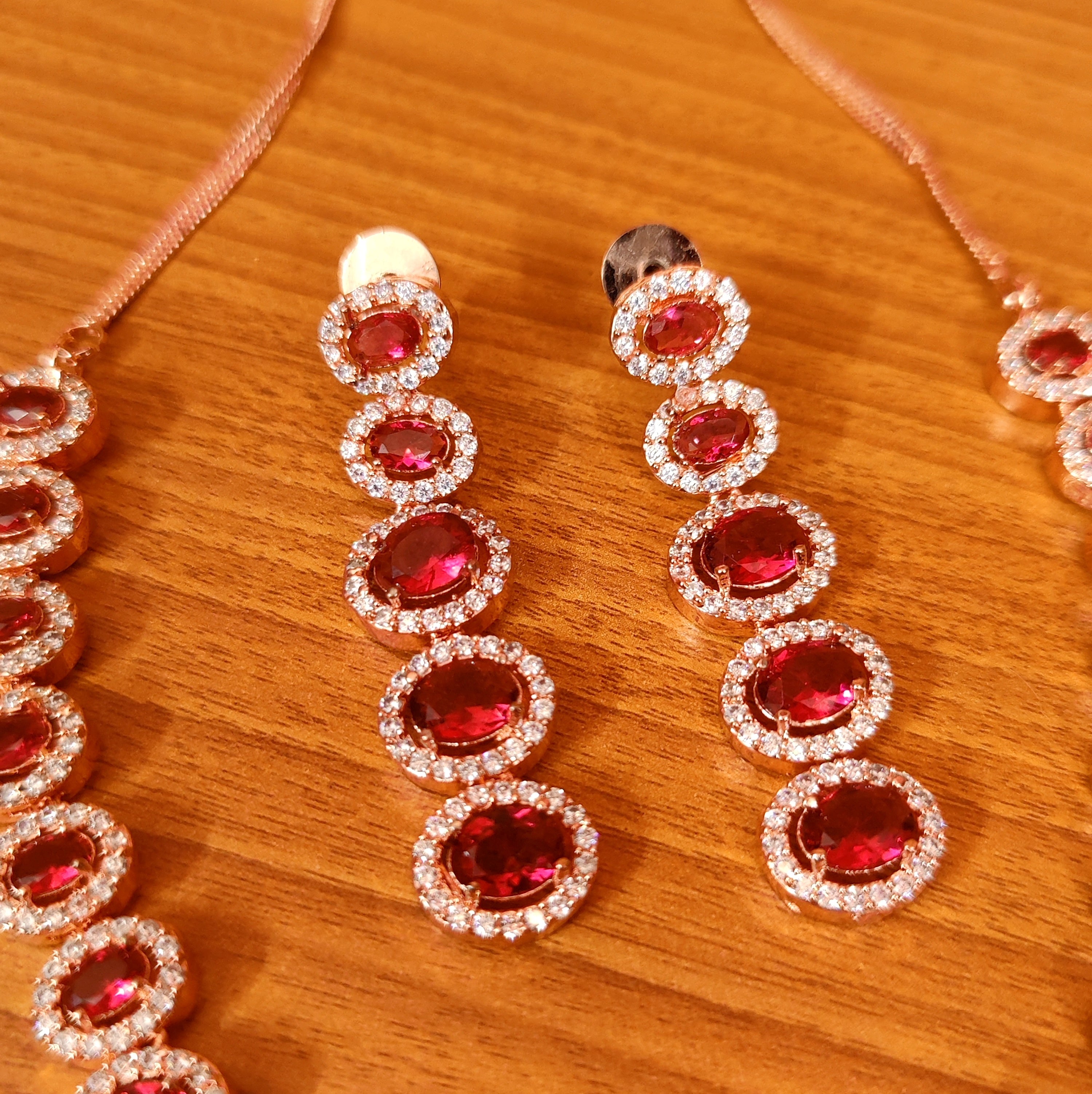 RUBY DIAMOND LOOK ROSE GOLD PLATED CZ NECKLACE SET
