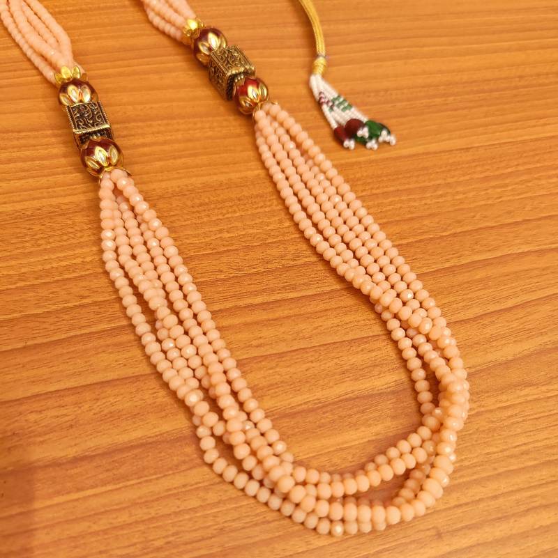 SEMI PRECIOUS PEACH COLOUR TWO LINE NECKLACE