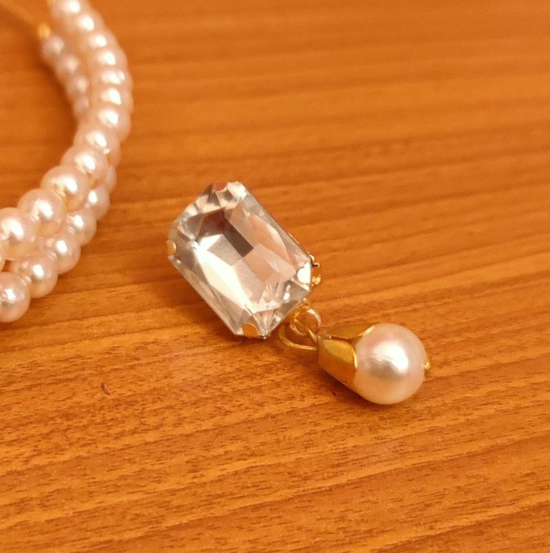 BEIGE CRYSTAL BEADED LAYERED NECKLACE