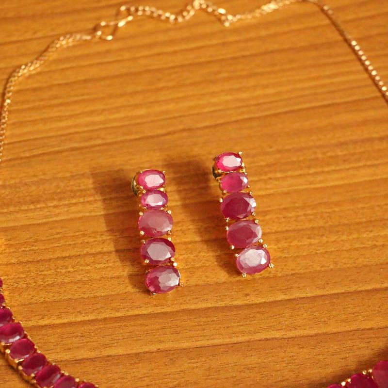 RUBY CZ STONE SINGLE LINE NECKLACE SET