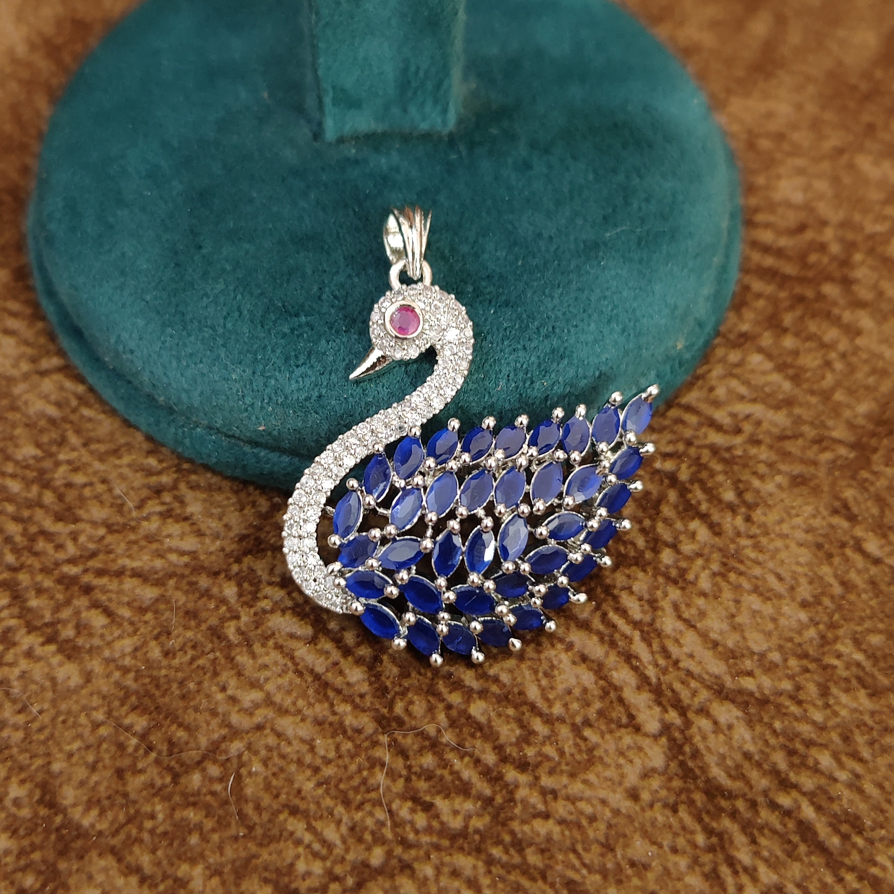 BLUE SAPPHIRE SILVER PLATED BIRD PENDANT SET