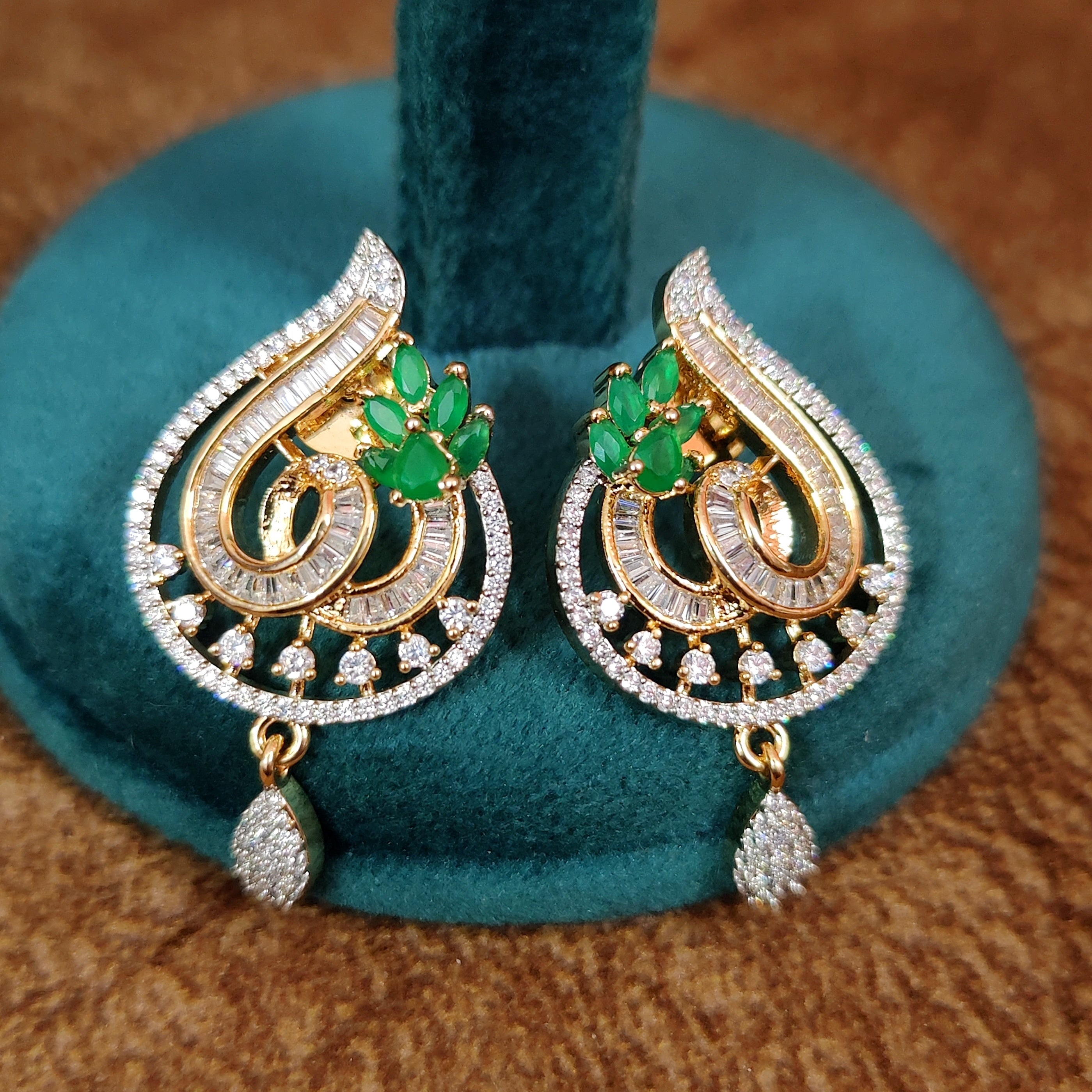 Indulge in luxury with our MARQUESE STONES & BAUGETTE STUDDED DIAMOND LOOK ALIKE SET. Crafted with the finest quality of marquese and baugette stones, this one-of-a-kind piece features a real diamond look alike design. Adorned with 18 kt gold plating and exquisitely crafted, these light weight earrings are the perfect addition to your jewelry collection. Experience the utmost craftsmanship with this exclusive set.