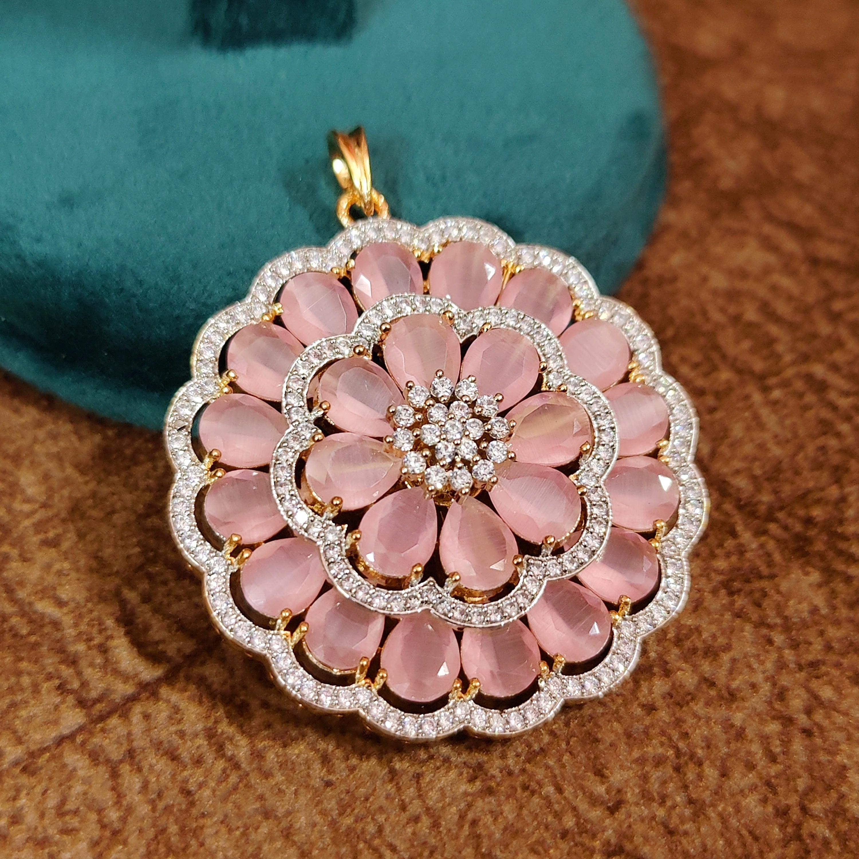 BABY PINK COLOUR FLORAL CZ PENDANT SET