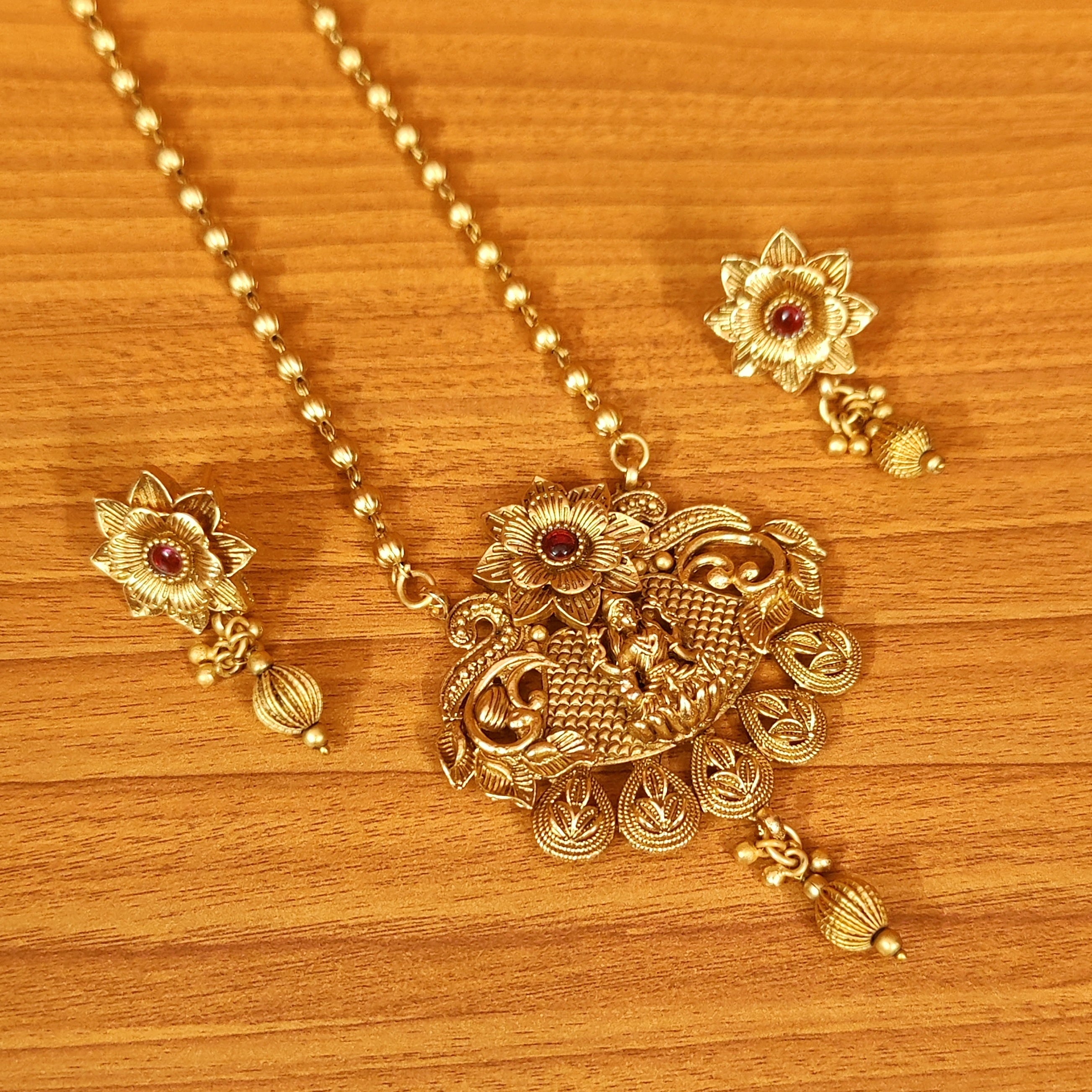 TEMPLE LOOK GOLD LOOKALIKE RUBY COLOUR PENDANT SET