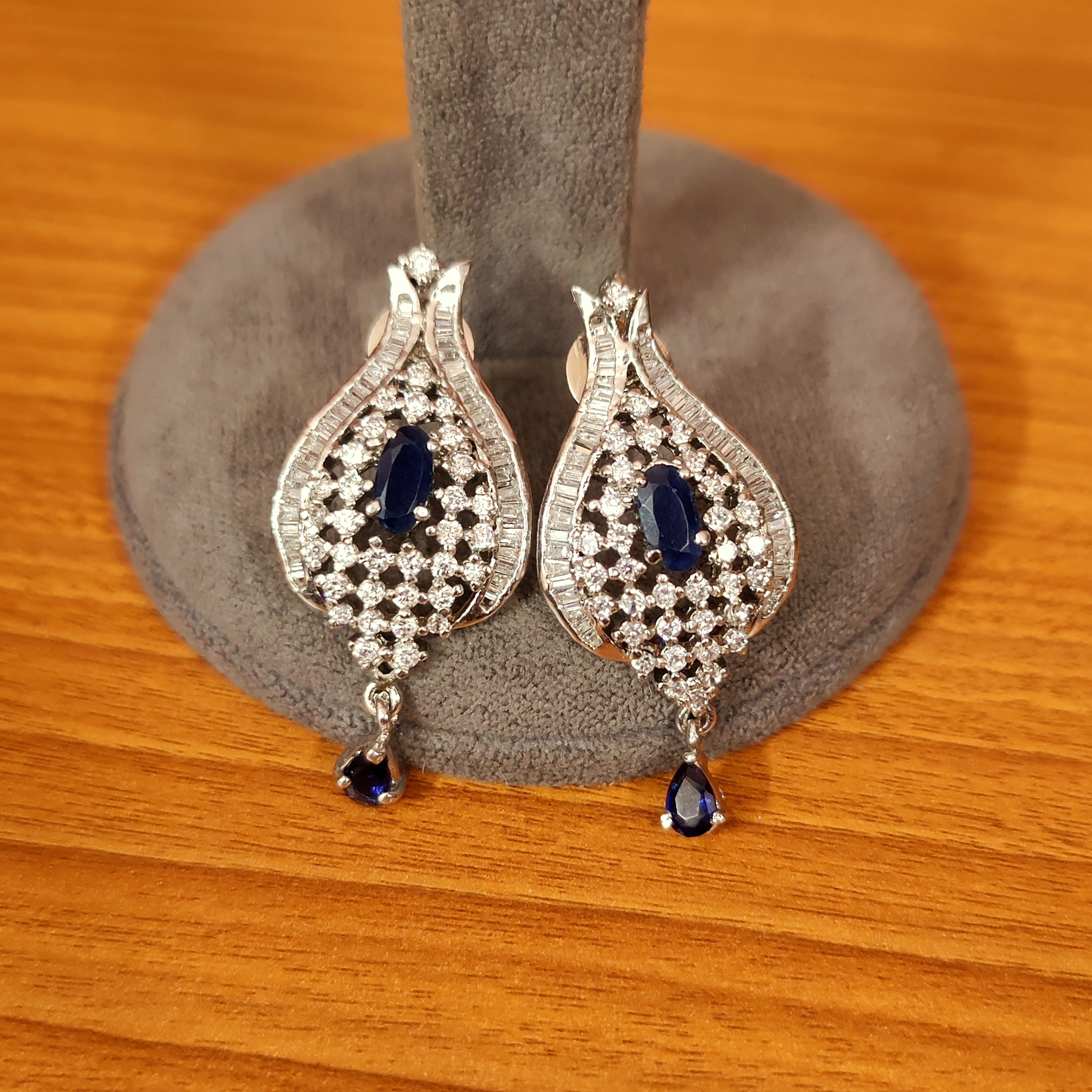 BLUE SAPPHIRE DIAMOND LOOK ELEGANT PENDANT SET