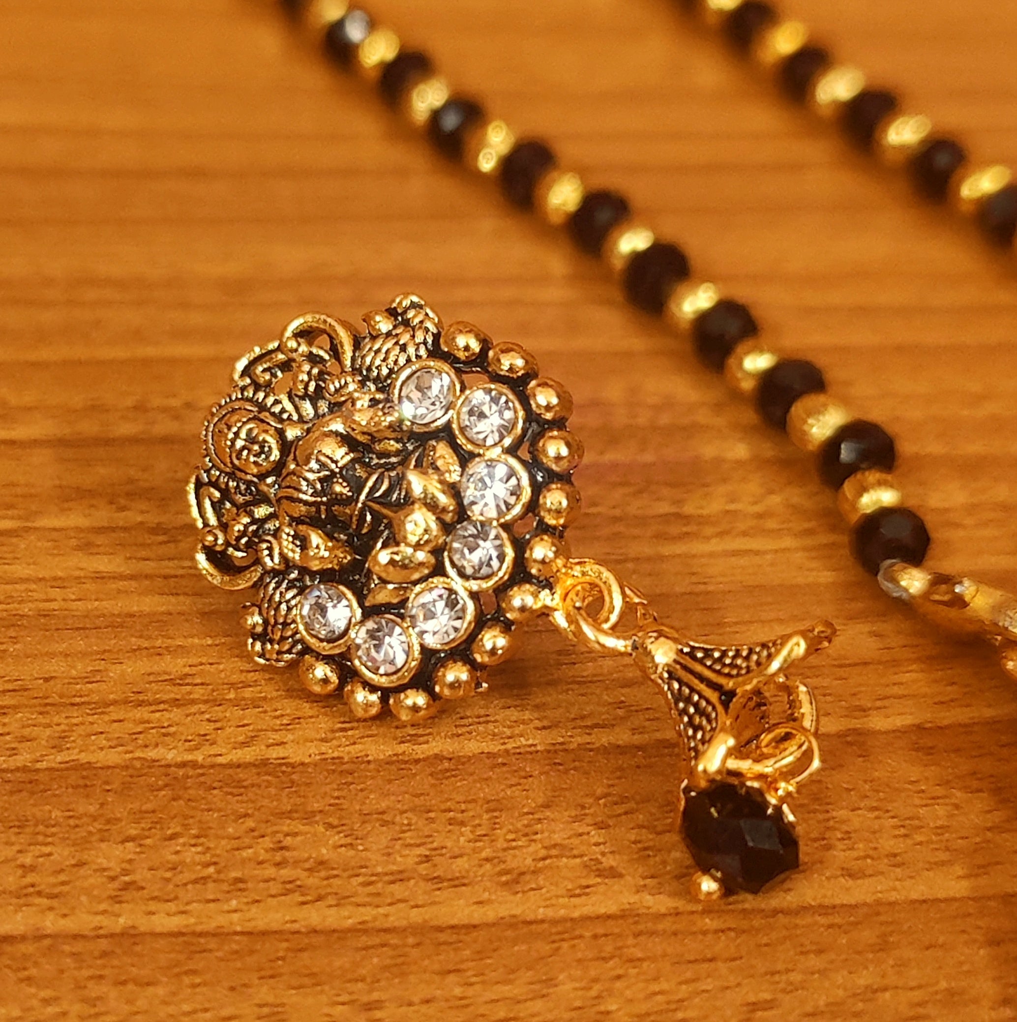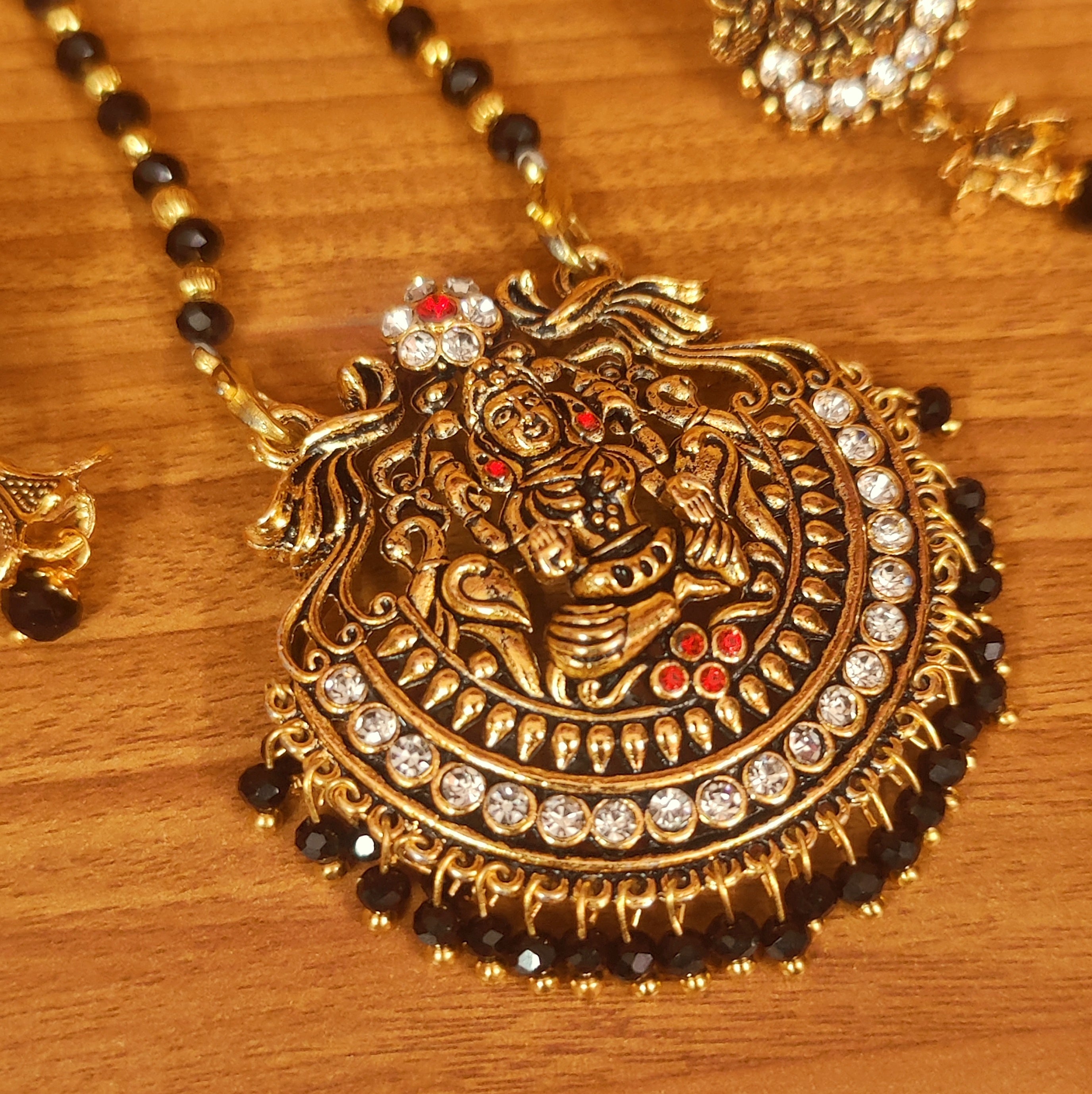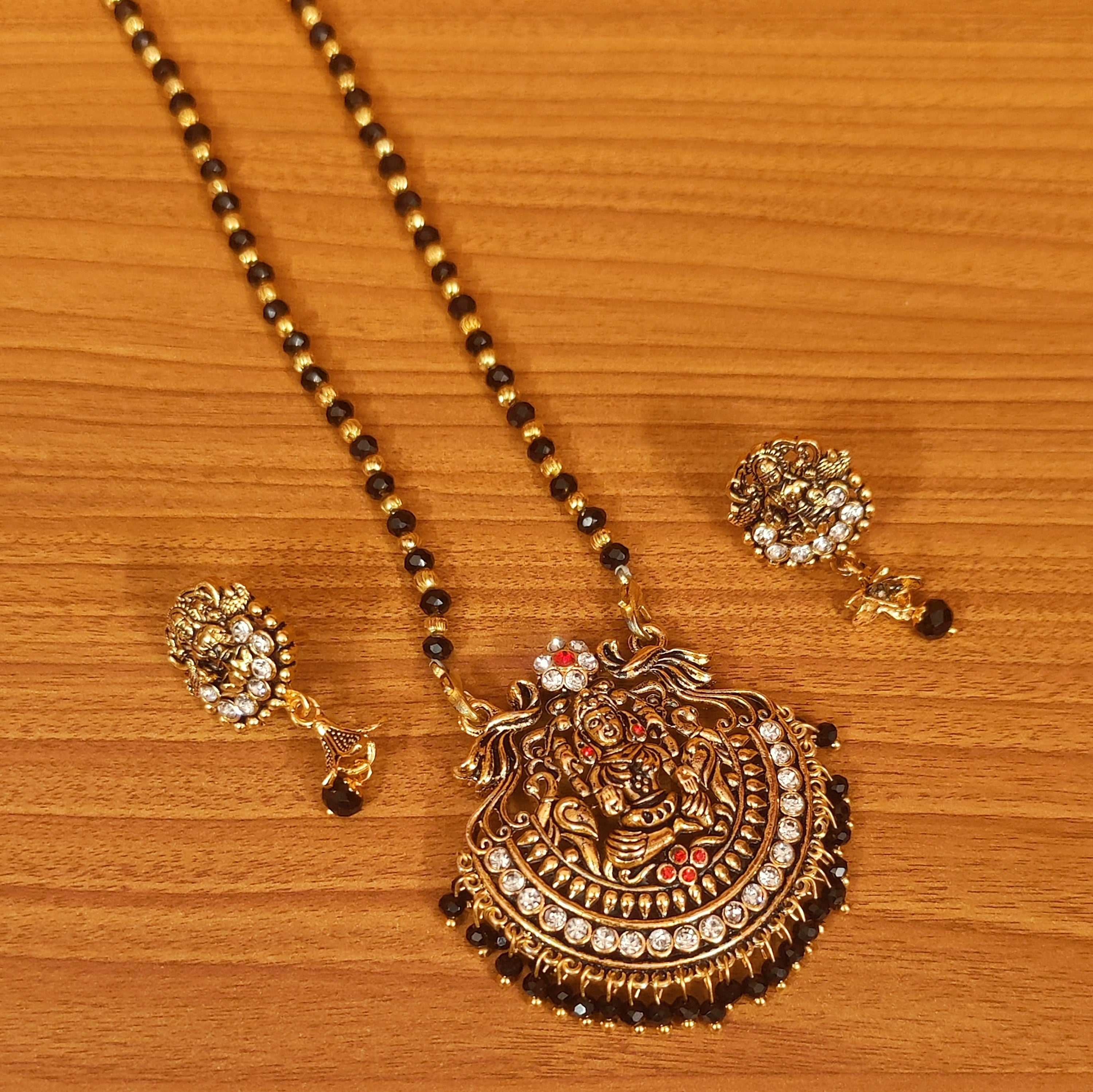 TEMPLE LOOK ZIRCON STUDDED BLACK PENDANT SET