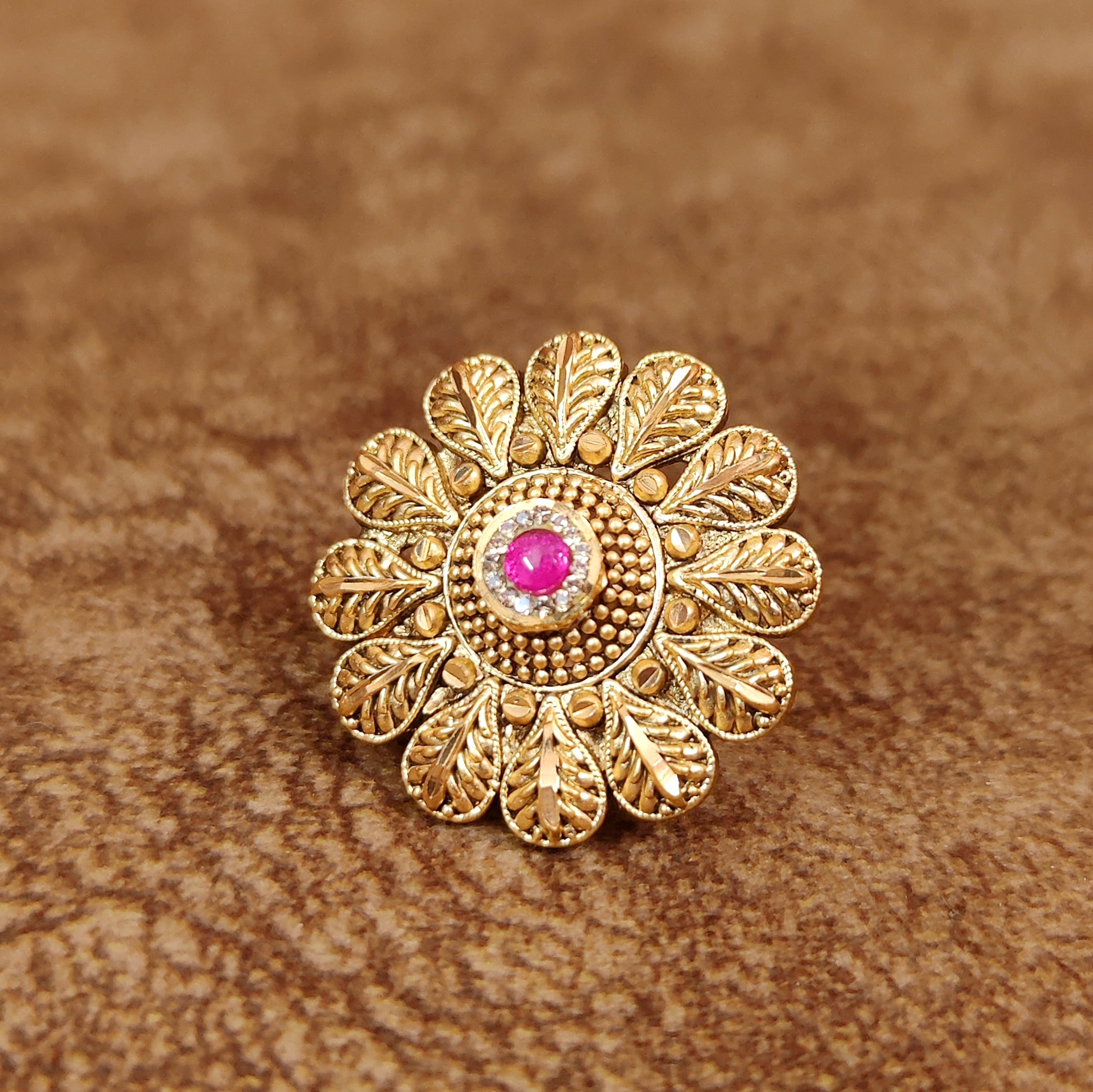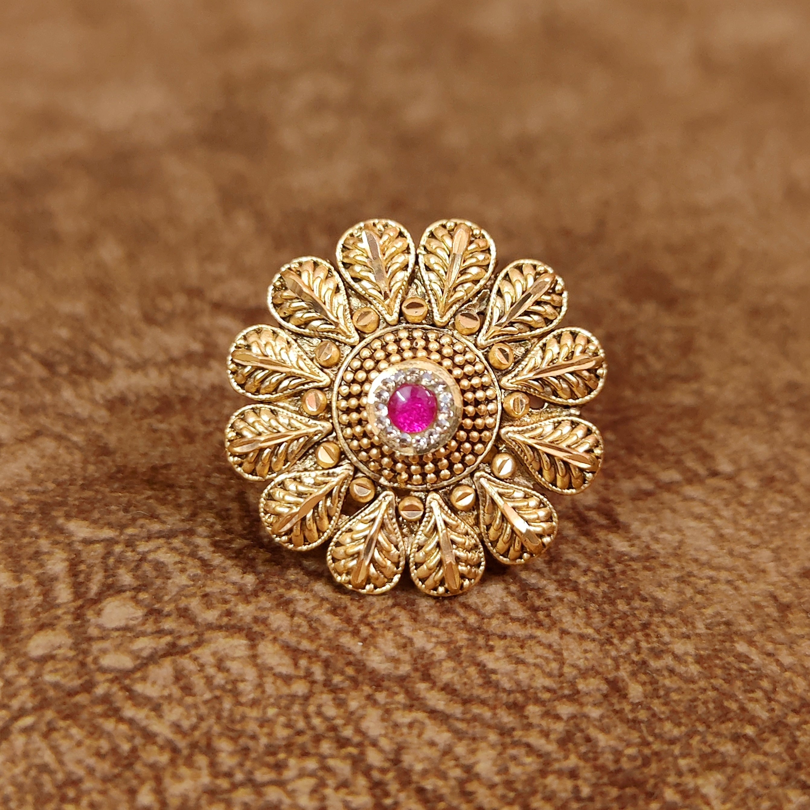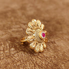 RUBY ANTIQUE GOLD LOOK ADJUSTABLE COCKTAIL RING