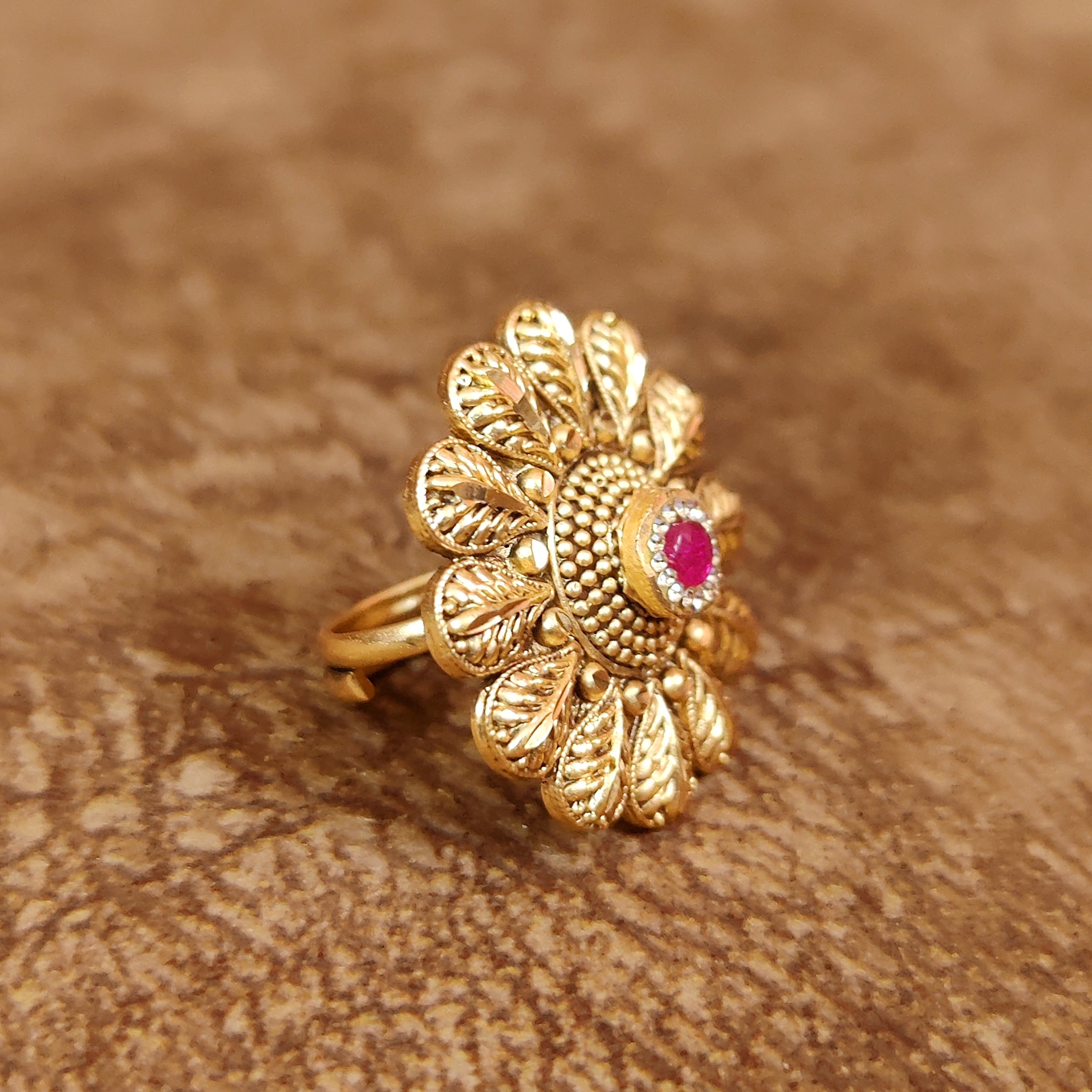 Elevate your style with the Ruby Antique Gold Look Adjustable Cocktail Ring, a timeless piece designed to captivate. Featuring a vibrant ruby-red centerpiece, this ring is beautifully crafted with an antique gold finish, exuding sophistication and elegance. The adjustable design ensures a perfect fit, making it the ideal accessory for weddings, cocktail parties, and festive occasions. Whether paired with traditional or contemporary outfits, this ring adds a regal touch to any look.