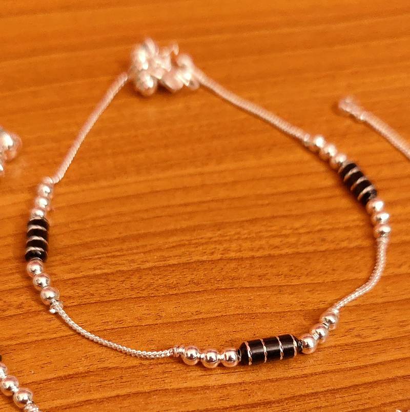 These Light Weight Chain Anklets Are Handcrafted In Metal Alloy With Silver Black Beads , The Anklets Are Very Light In Weight And Are Plated With Silver Polish Which Gives Them A Real Silver Look.