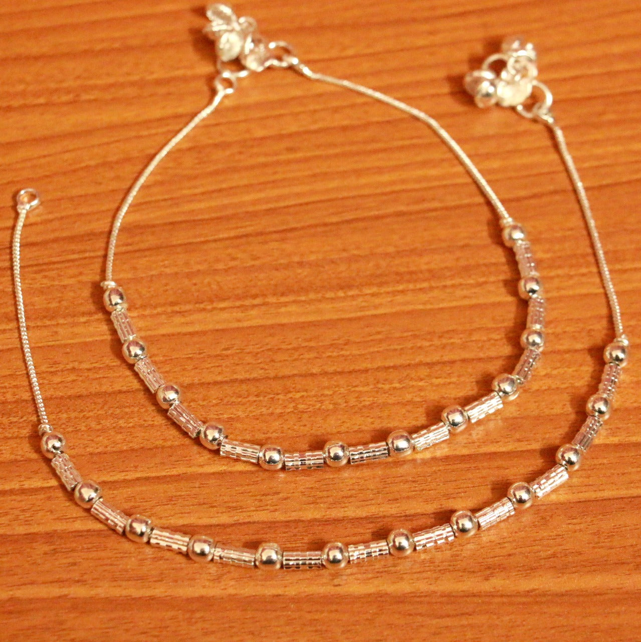 These beautiful anklet are handcrafted in metal alloy with imitation silver look beads and pipes of very fine quality , these anklet are very light in weight and plated with silver rhodium to give it a real silver look.