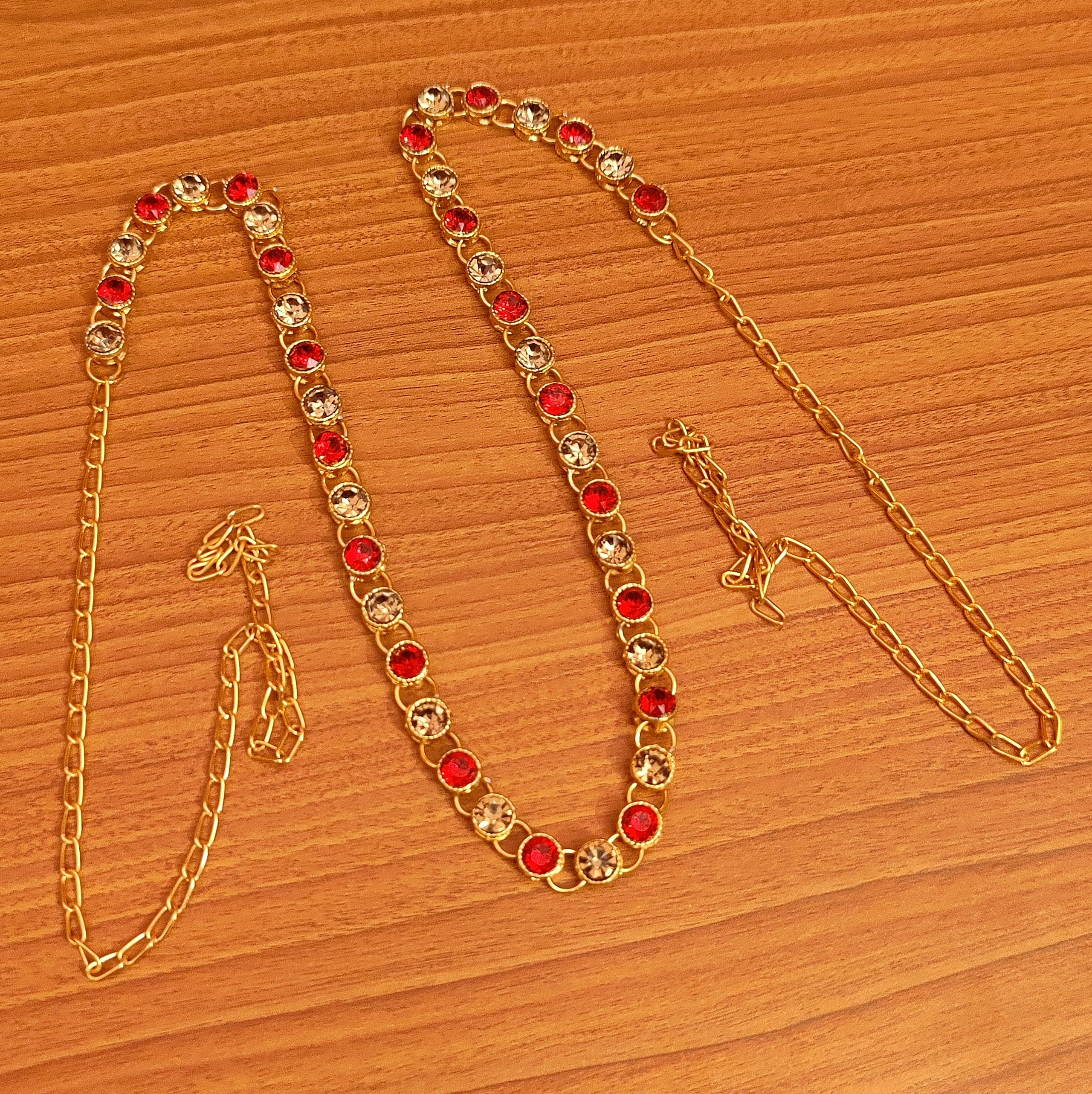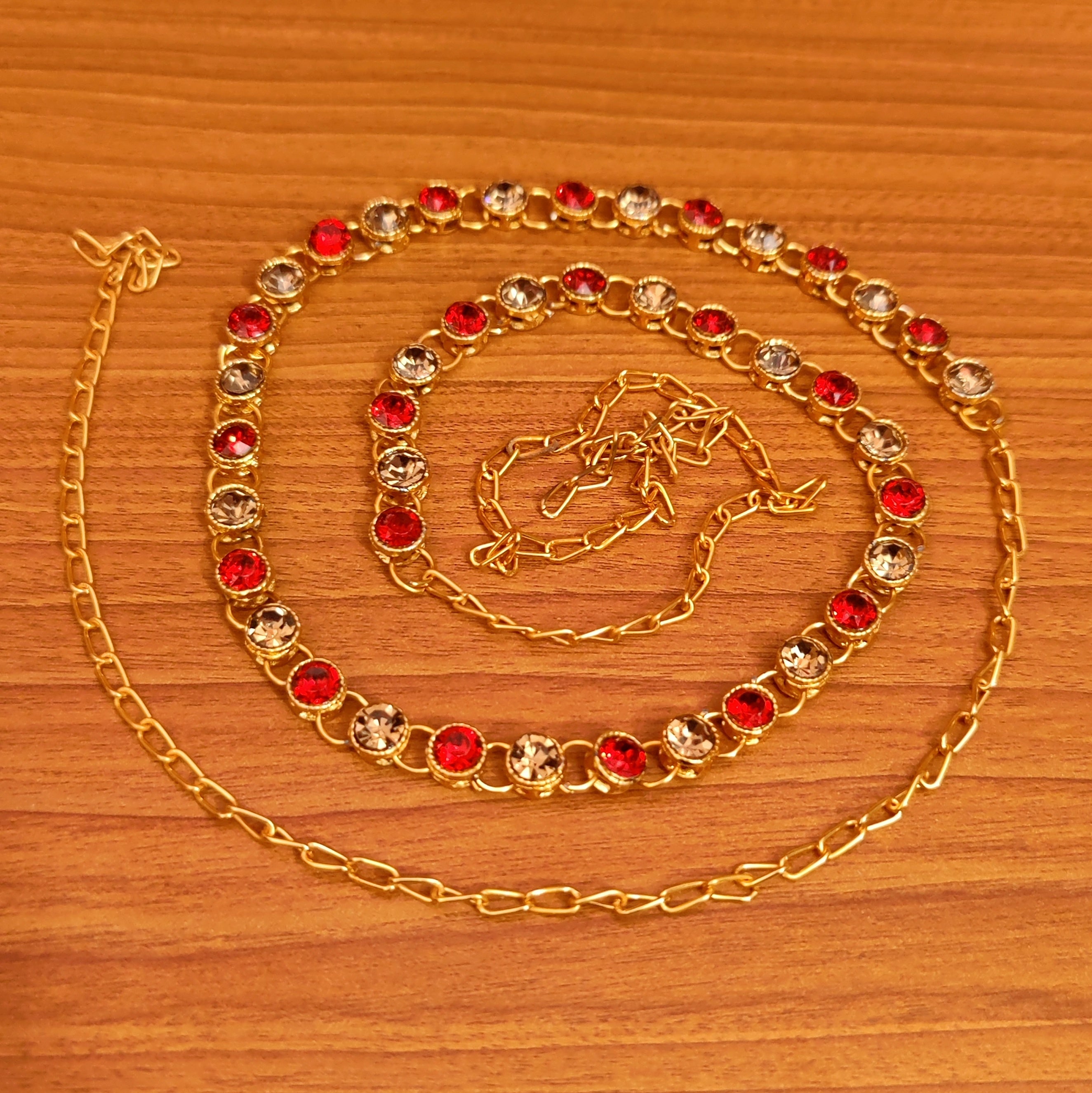 GOLD PLATED RED & YELLOW ZIRCON WAISTBELT