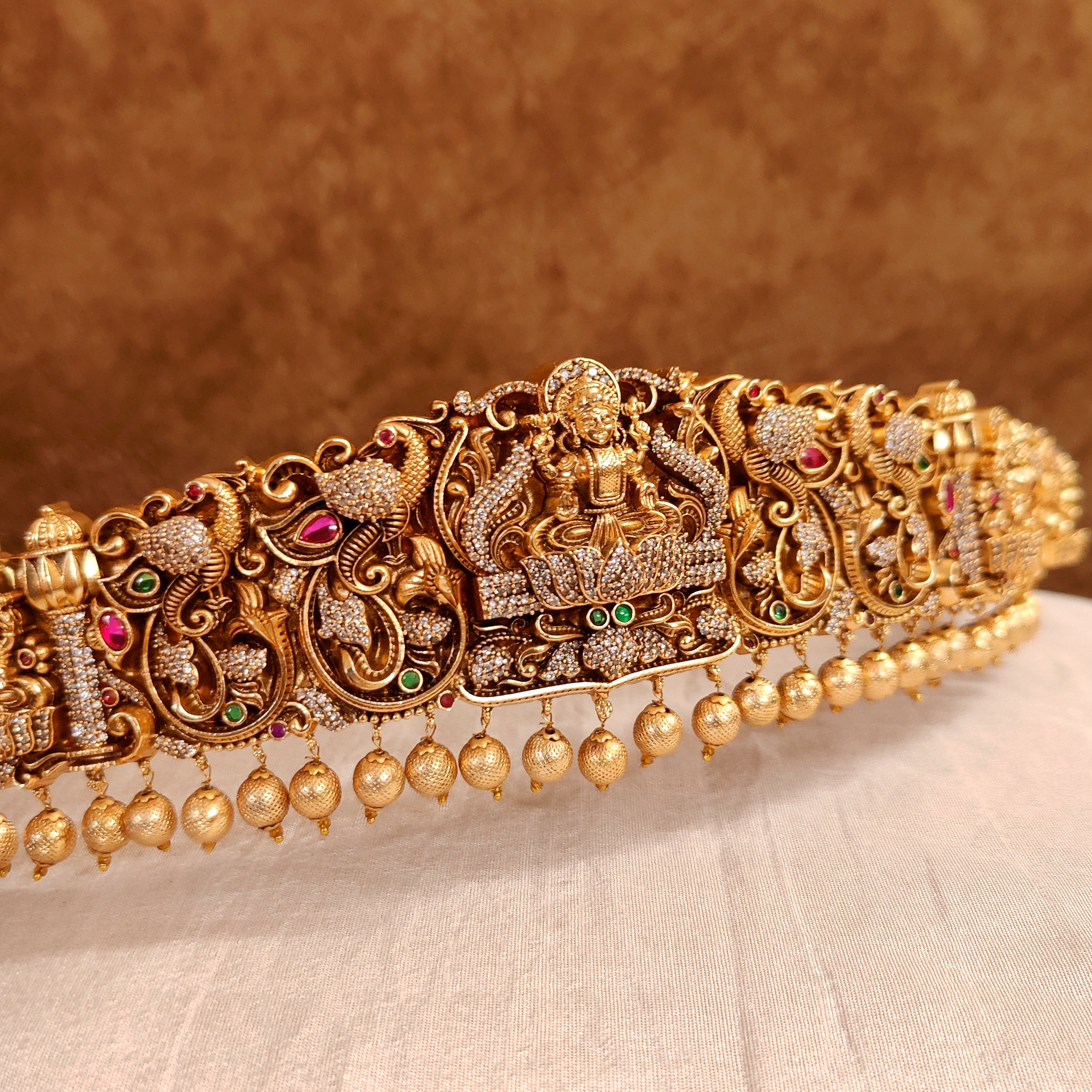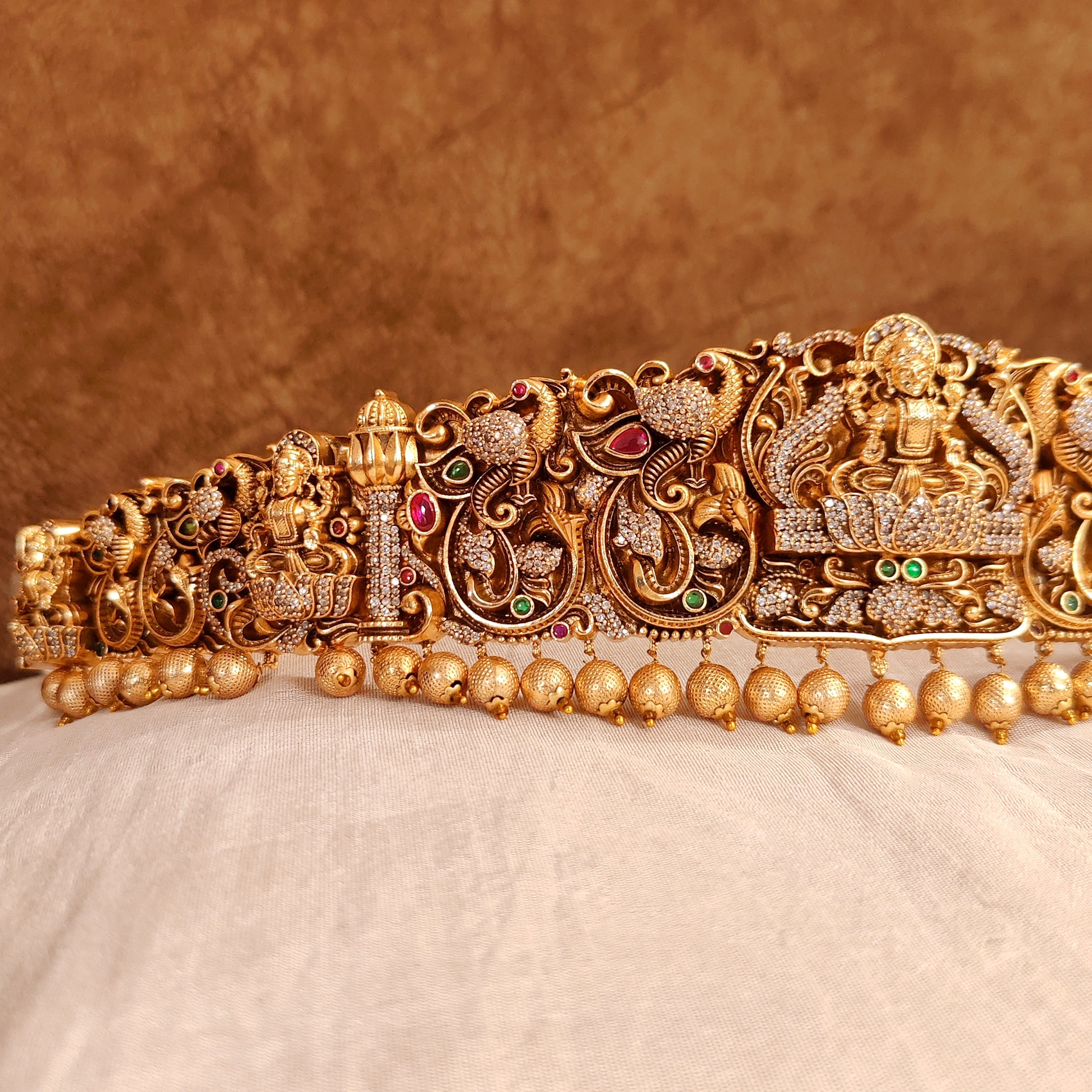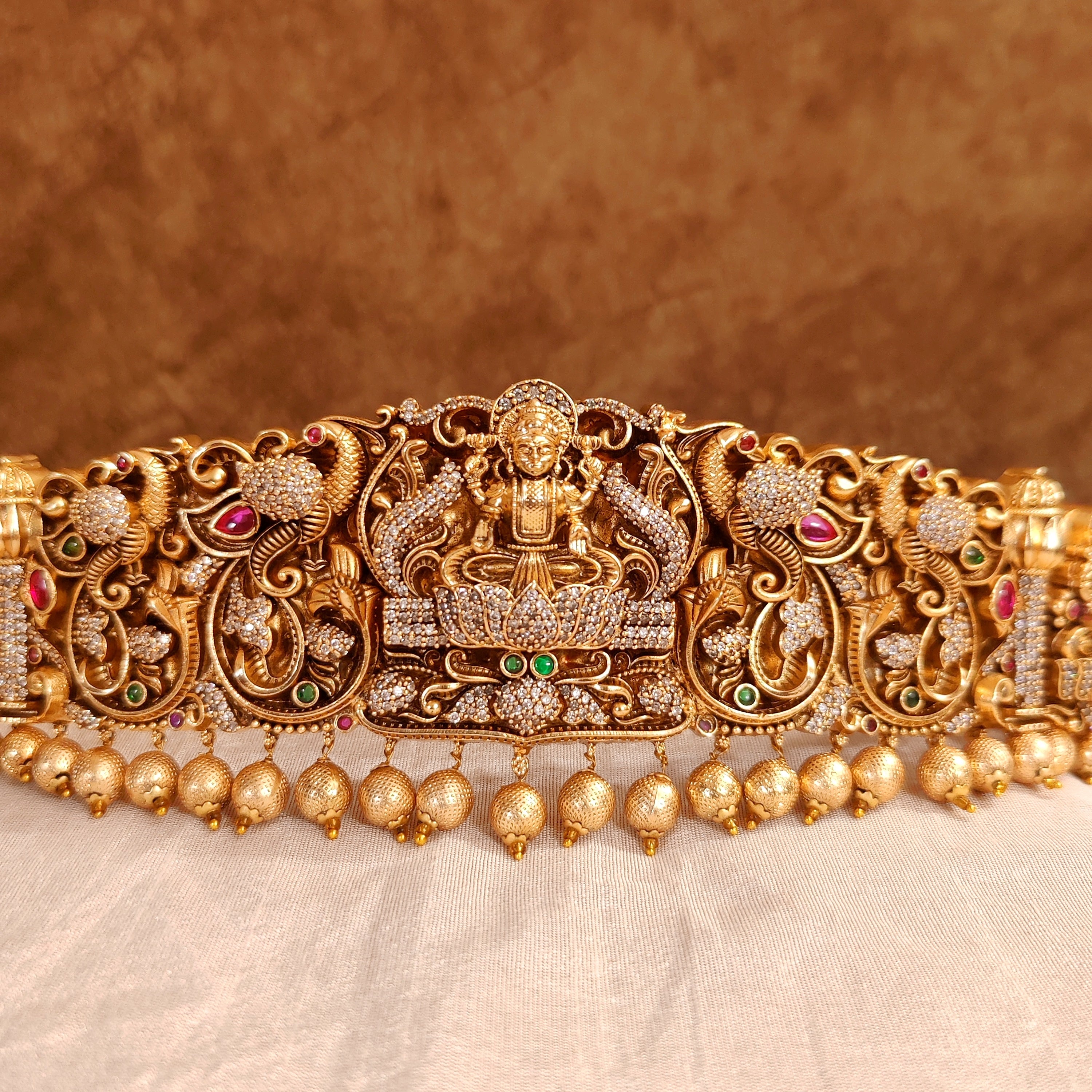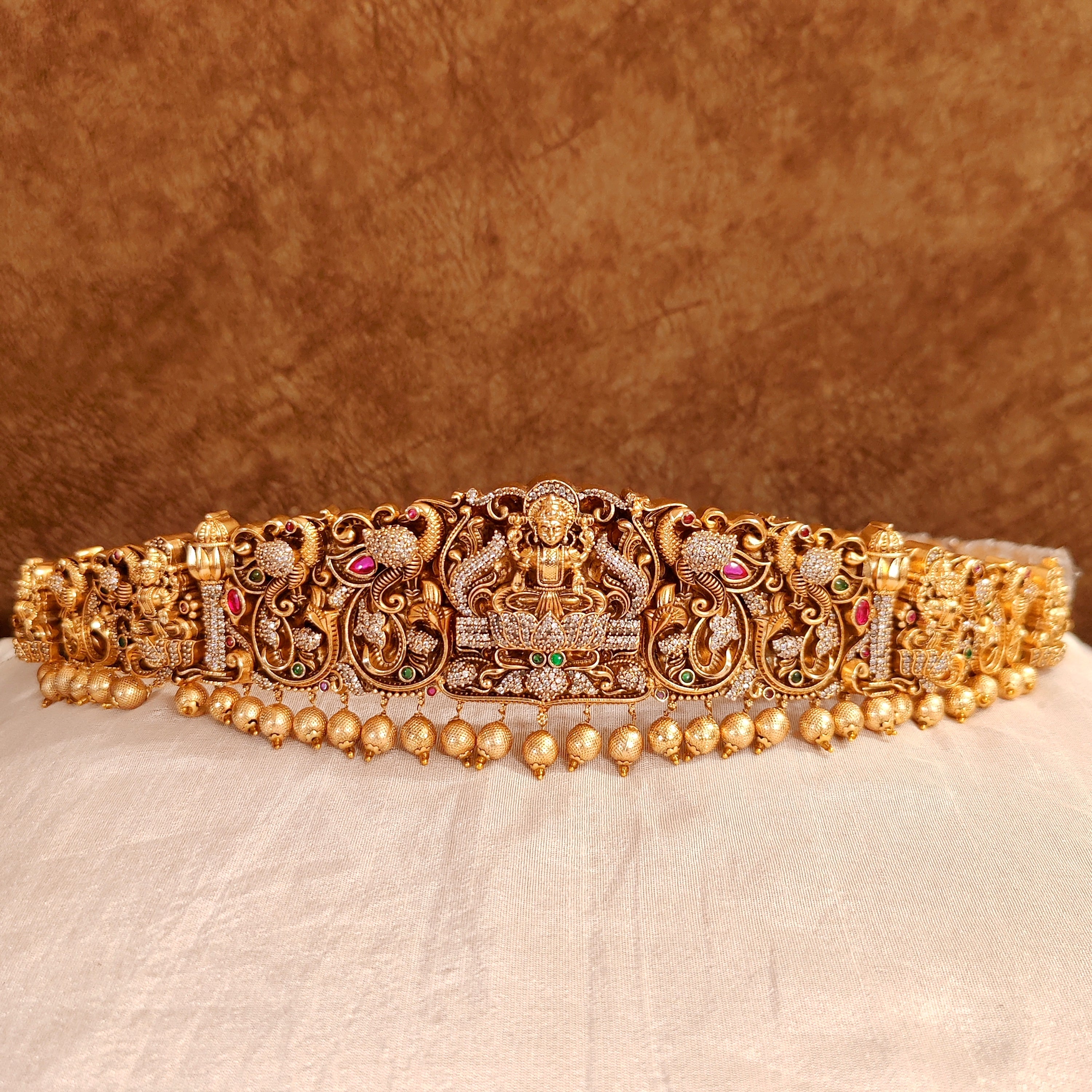 Temple Look Gold Plated Kemp Stones Waistbelt/Oddinayam