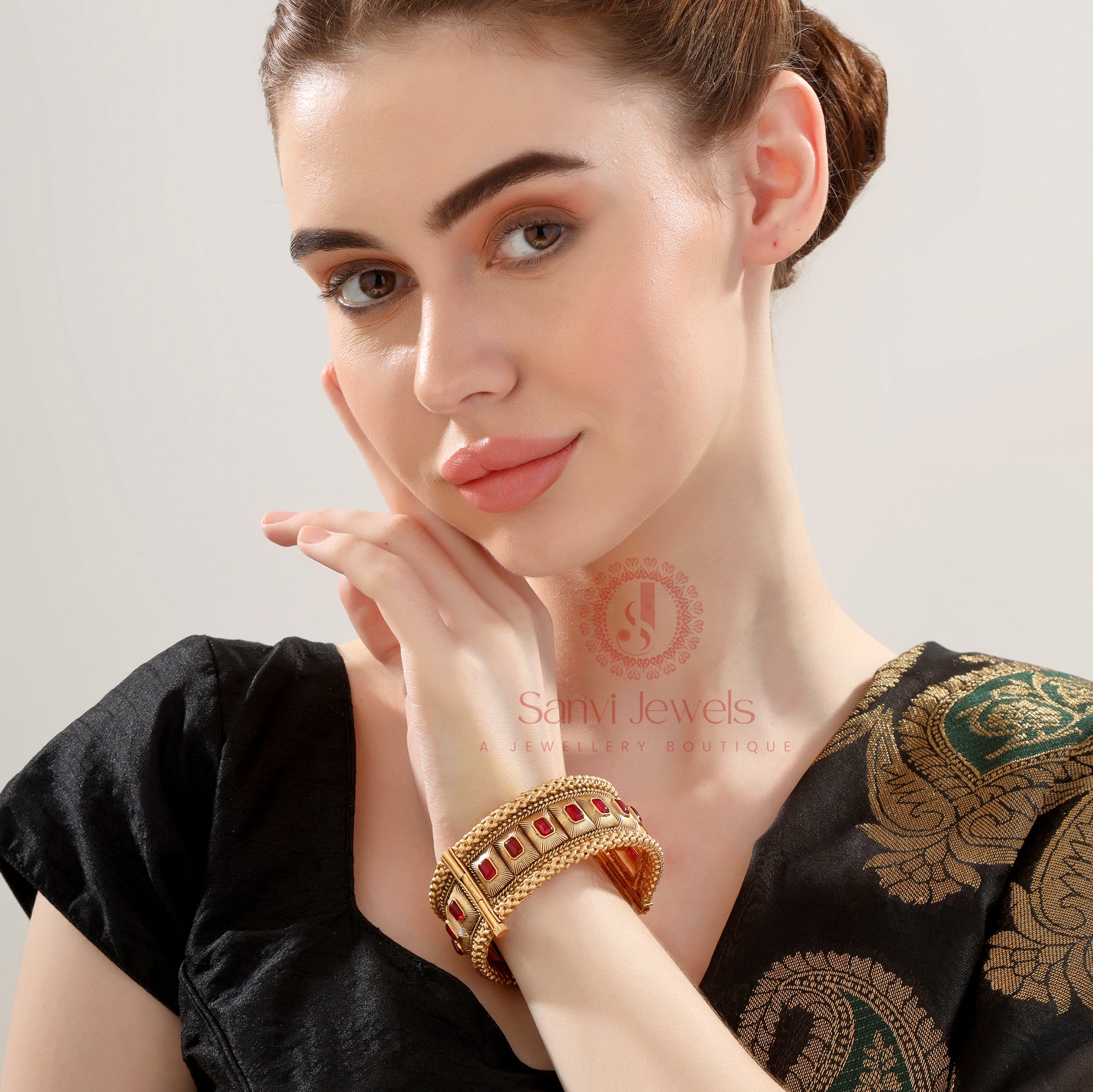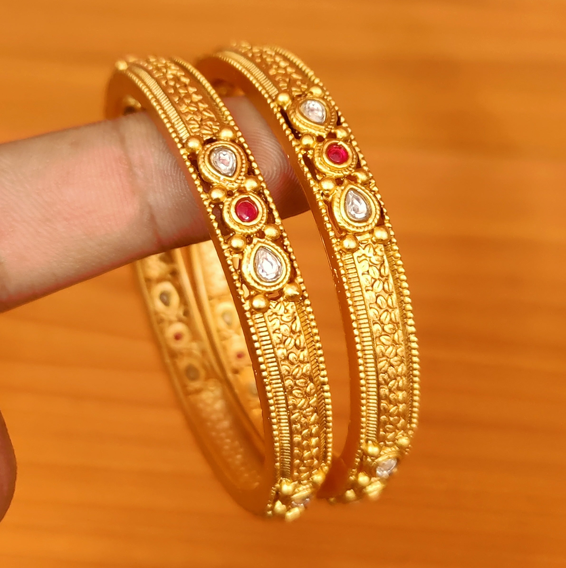RUBY MATT GOLD RAJWADA POLISH OPENABLE BANGLES
