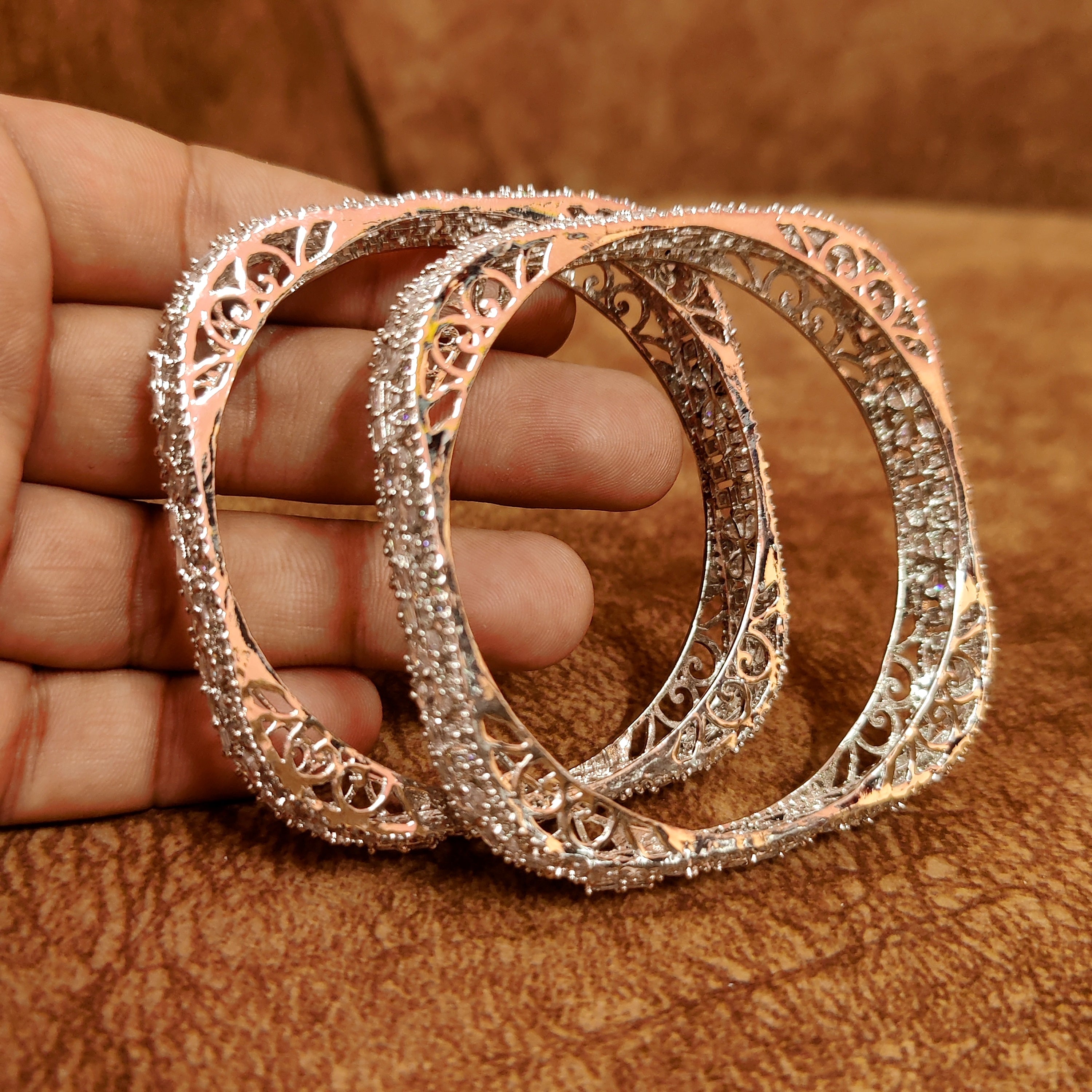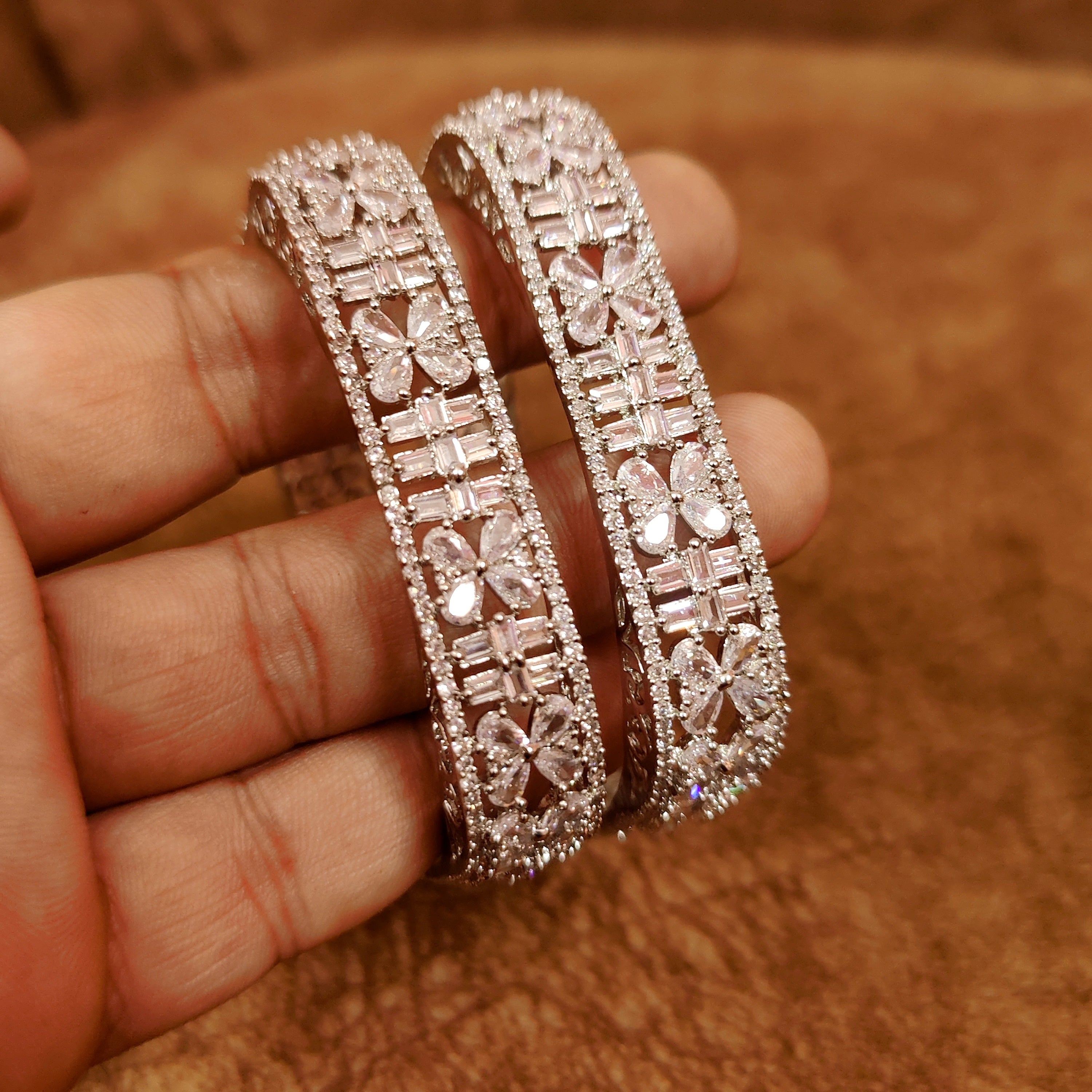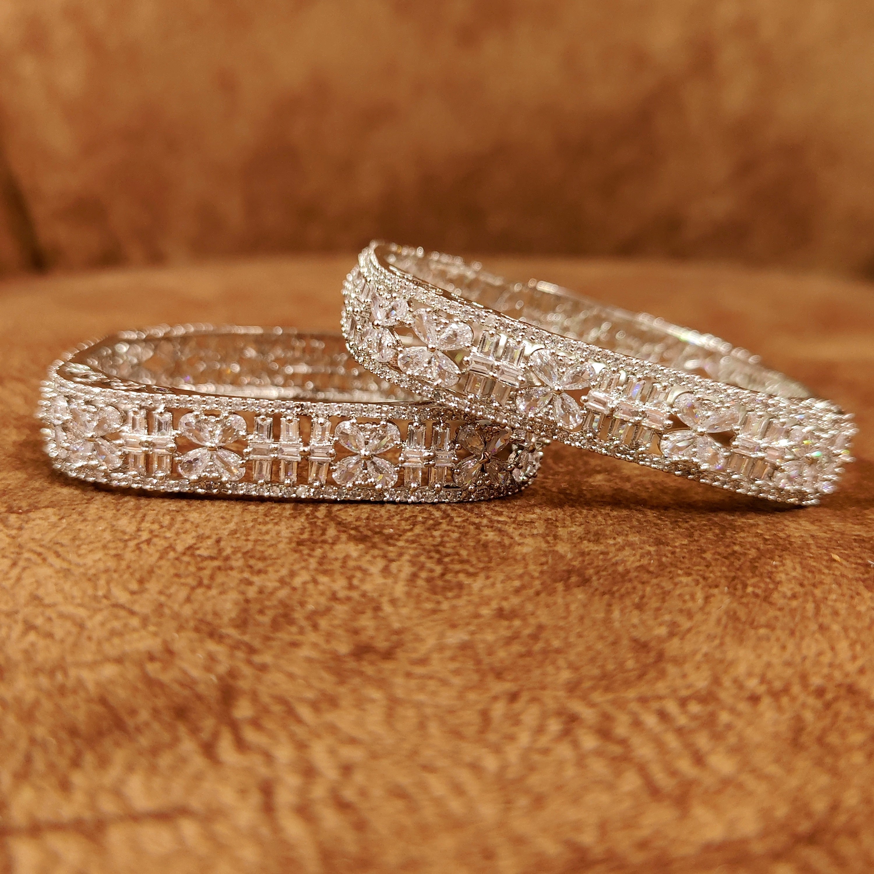 SILVER PLATED DIAMOND LOOK SQUARE SHAPE BANGLES