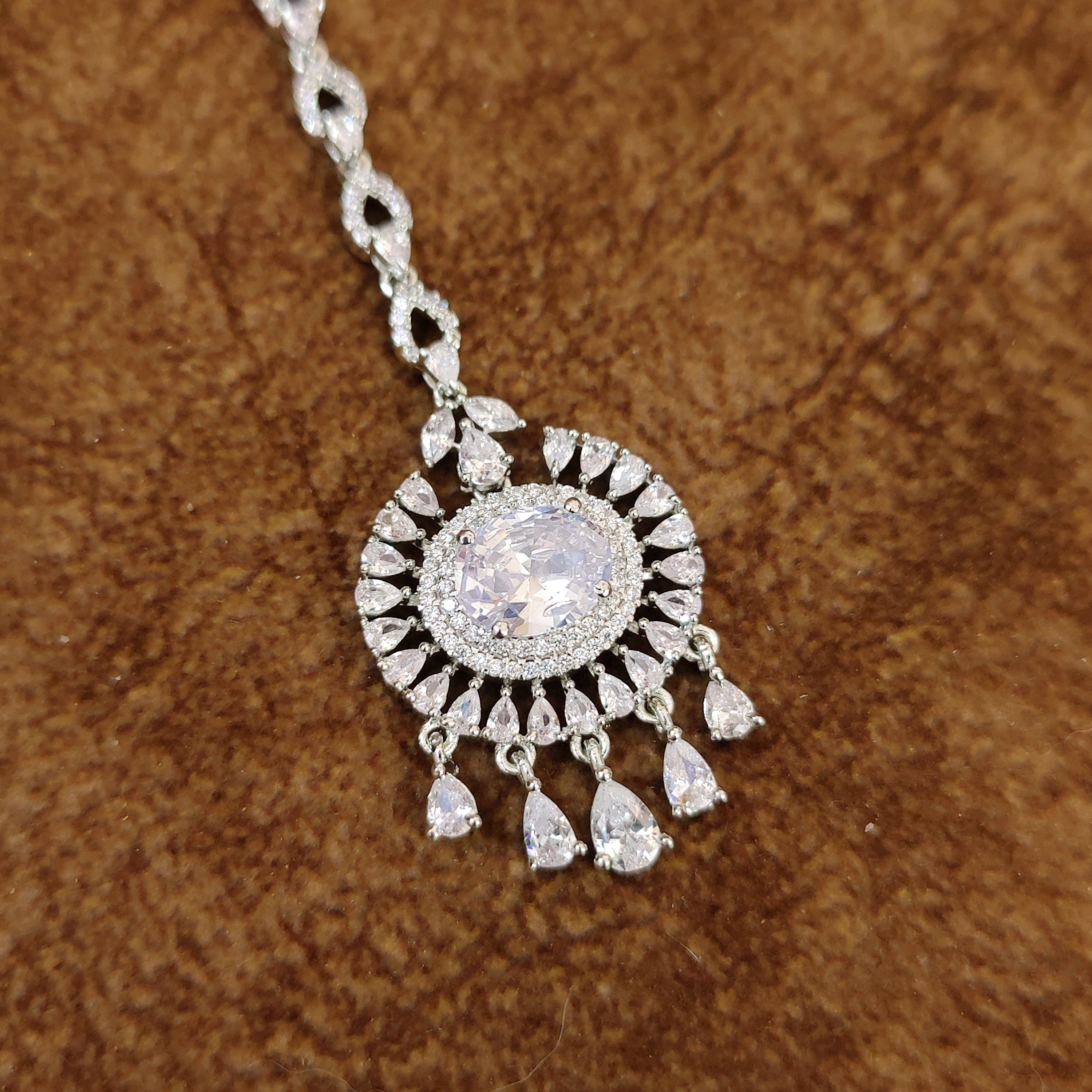 SILVER PLATED DIAMOND LOOK WEDDING MAANG TIKKA